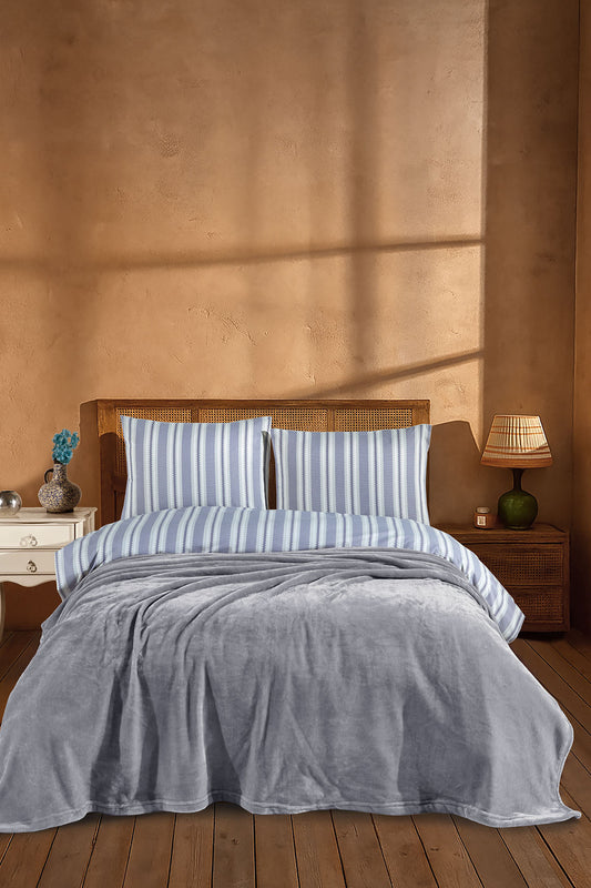 Pamuklu ve yumuşak yapısı ile yatağınızda kahvenizi yudumlarken, kitabınızı okurken özel anlarınıza eşlik edecektir. Modern çizgisel deseni ve enerji veren renk tonlarıyla evinizin dekorasyonuna kolayca uyum sağlayacaktır. Cildi tahriş etmez ve insan sağlığına zarar vermez.160x220 cm ölçüsündeki geniş yapısıyla tek kişilik yataklara mükemmel uyum sağlar. Ürünümüzü 30 derecede makinede yıkayarak günlük kullanımınızda konforu ve rahatlığı bulacaksınız. Kurutma makinesi ve kuru temizleme önerilmez.