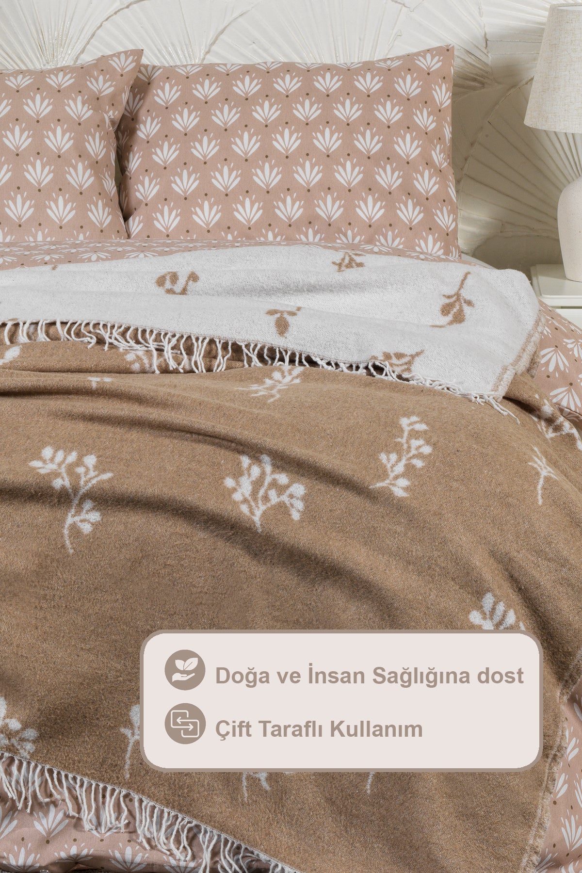 Pamuklu ve yumuşak yapısı ile yatağınızda kahvenizi yudumlarken, kitabınızı okurken özel anlarınıza eşlik edecektir. Natürel deseni ve enerji veren renk tonlarıyla evinizin dekorasyonuna kolayca uyum sağlayacaktır. Cildi tahriş etmez ve insan sağlığına zarar vermez. 200x220 cm ölçüsündeki geniş yapısıyla çift kişilik yataklara mükemmel uyum sağlar. Ürünümüzü 30 derecede makinede yıkayarak günlük kullanımınızda konforu ve rahatlığı bulacaksınız. Kurutma makinesi ve kuru temizleme önerilmez.