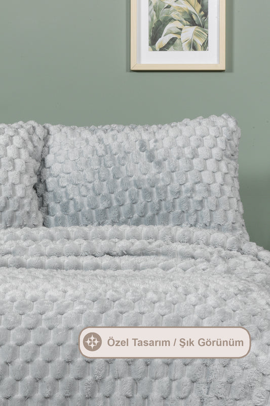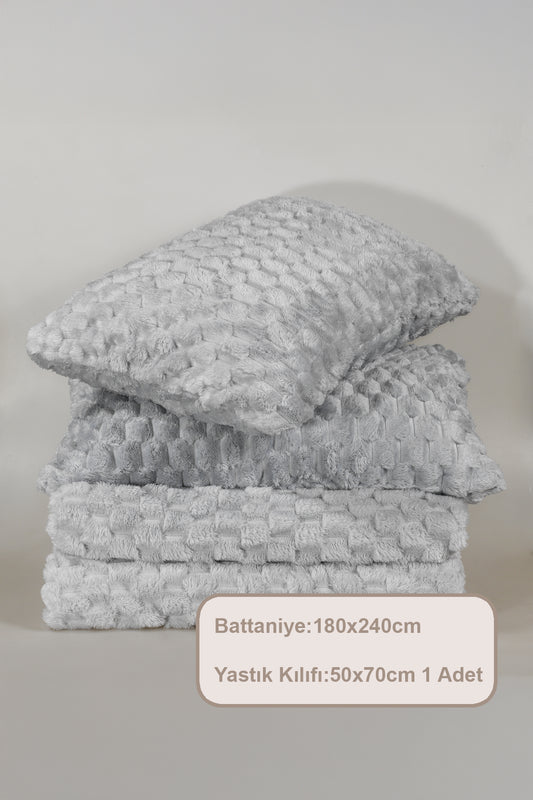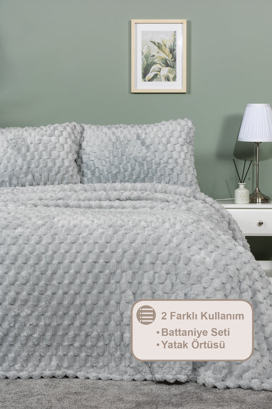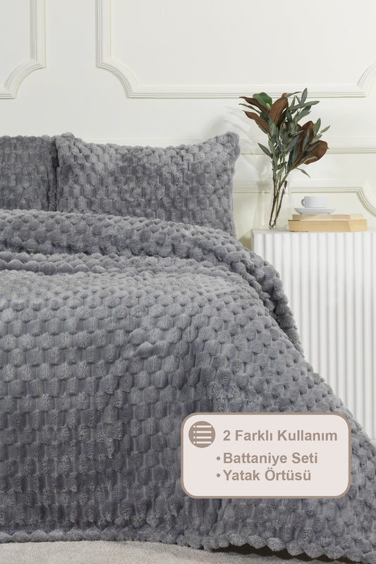 ELART Polen Battaniye Seti Çift Kişilik Wellsoft 3 Parça (230x250 cm) Gri