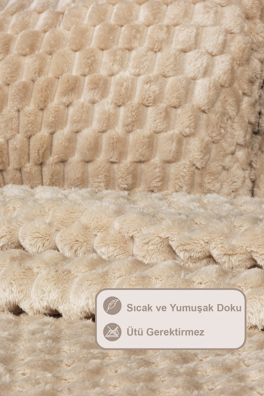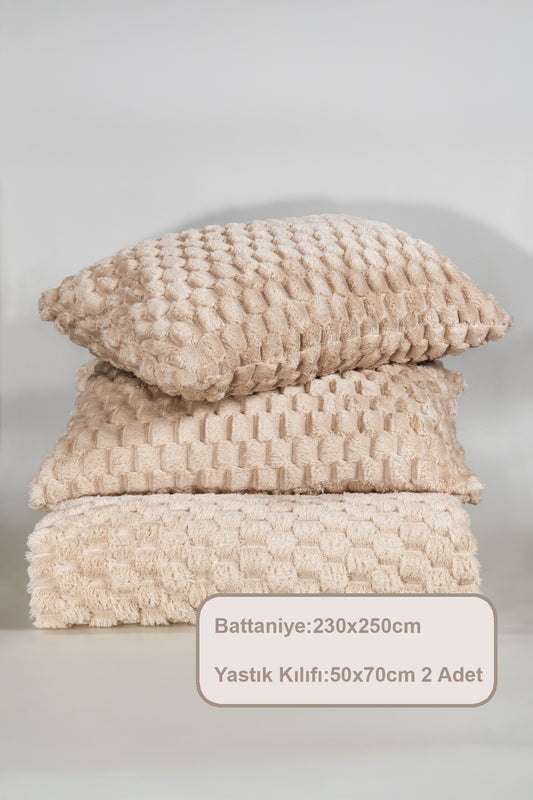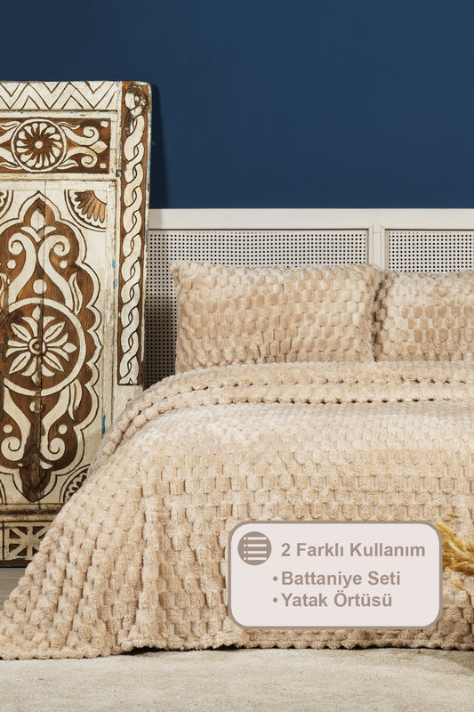 ELART Polen Battaniye Seti Çift Kişilik Wellsoft 3 Parça (230x250 cm) Cappuccino