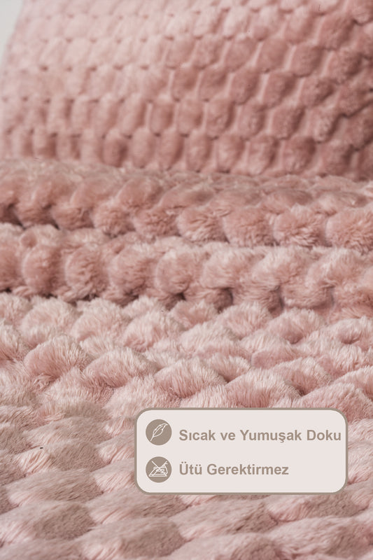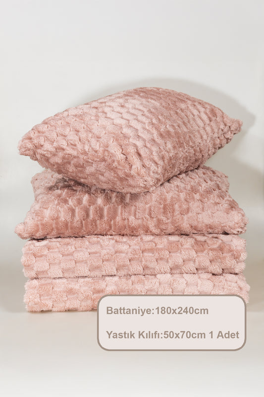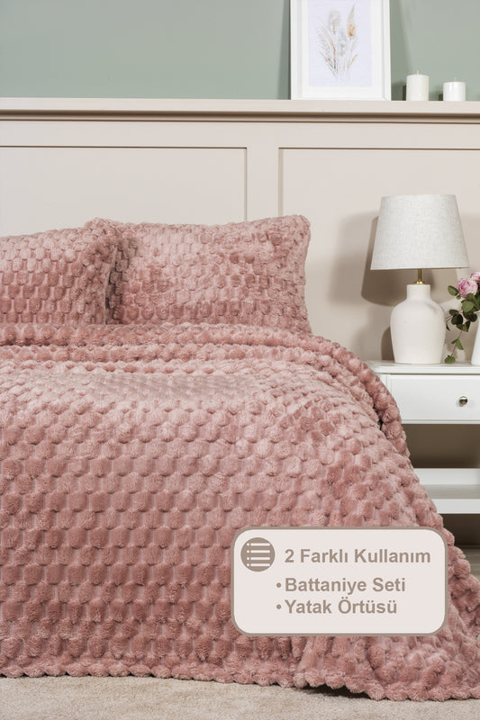 ELART Polen Battaniye Seti Çift Kişilik Wellsoft 3 Parça (230x250 cm) Gülkurusu