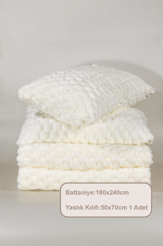 ELART Polen Battaniye Seti Tek Kişilik Wellsoft 2 Parça (180x240 cm) Ekru