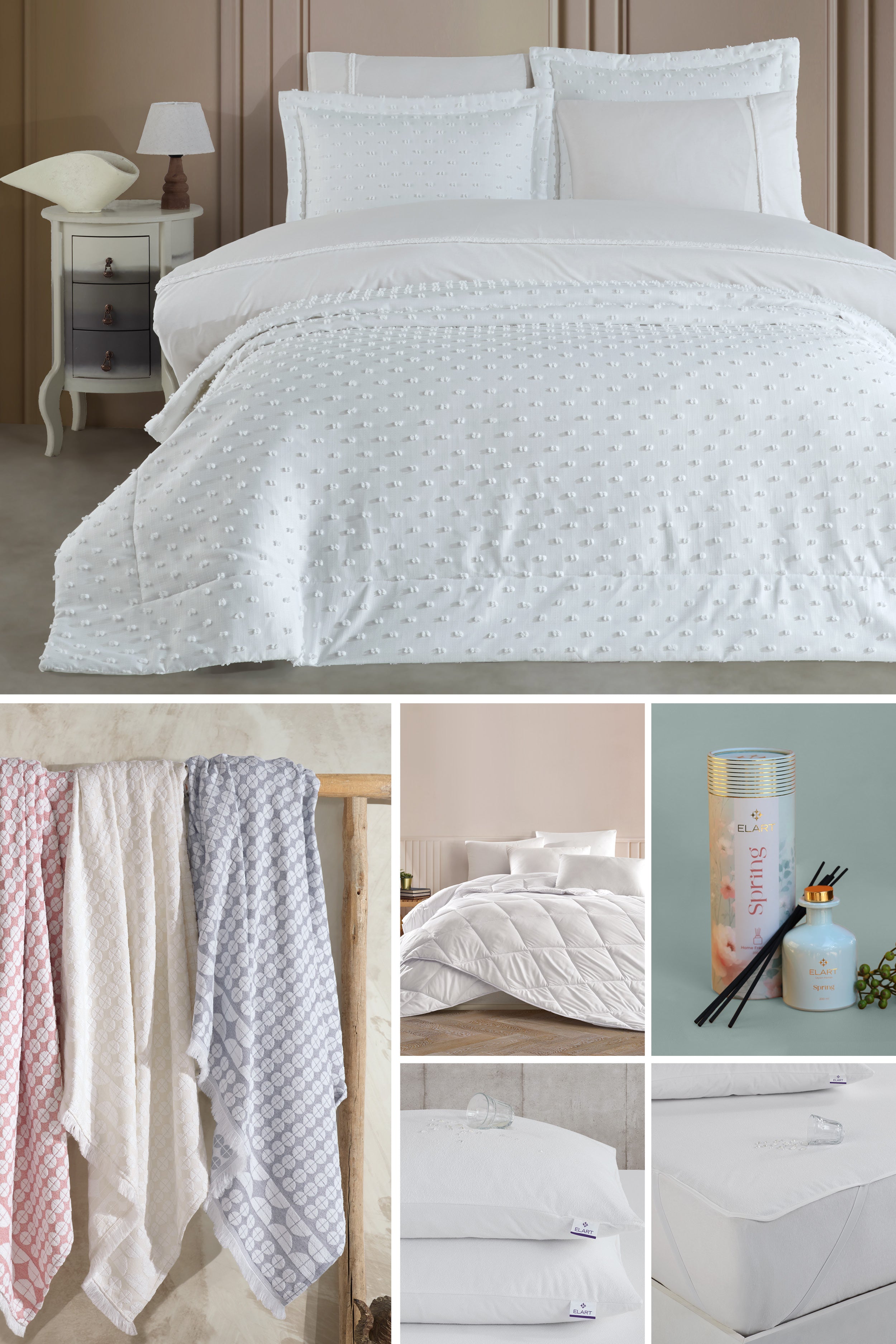 Evinizin her köşesine uyum sağlayan bu set, çeyiz hazırlığınızı şıklık ve konforla tamamlar ;
