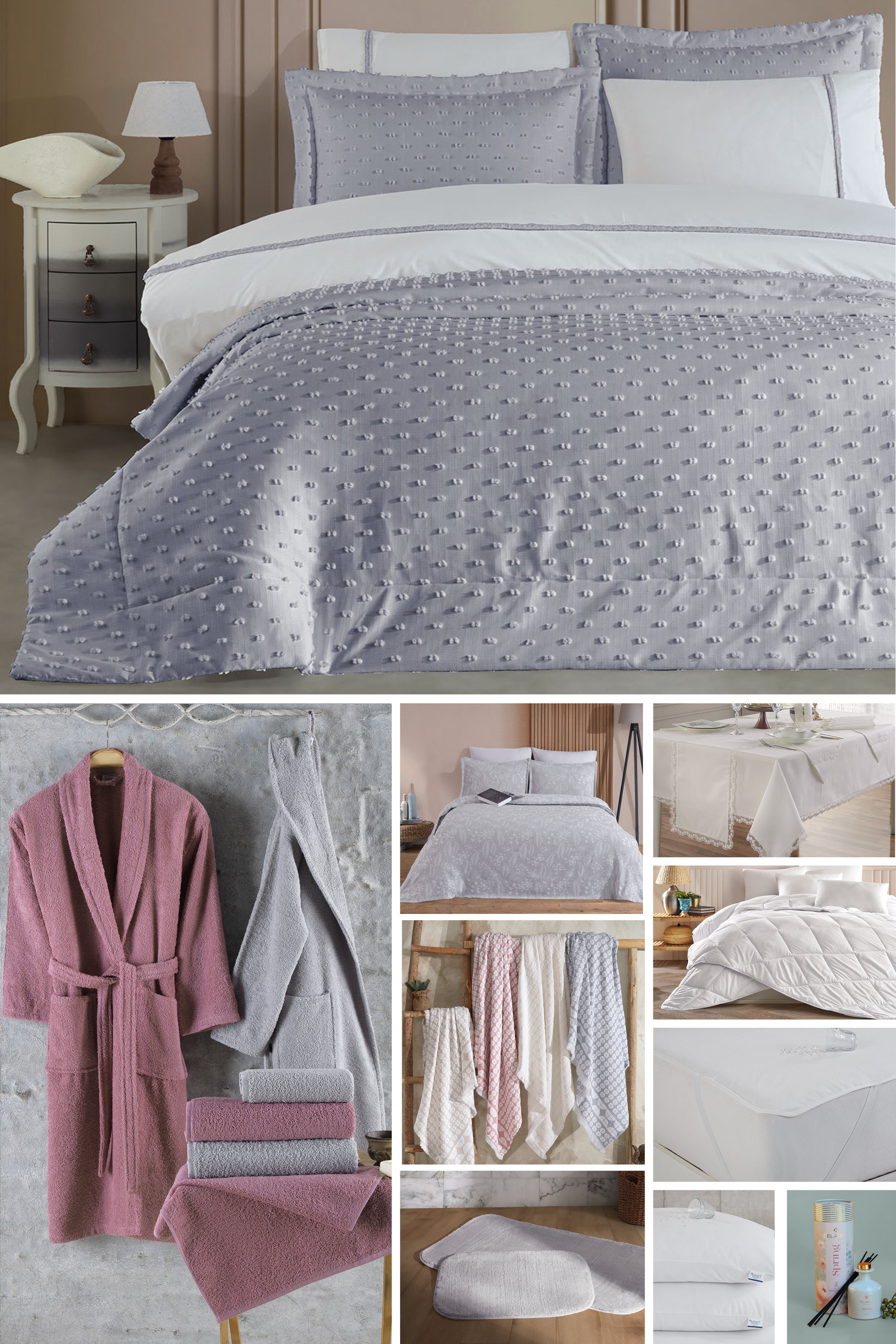 Nora Çeyiz Paketi, modern ve şık tasarımıyla yatak odanıza zarafet katmak için özenle hazırlanmıştır ;