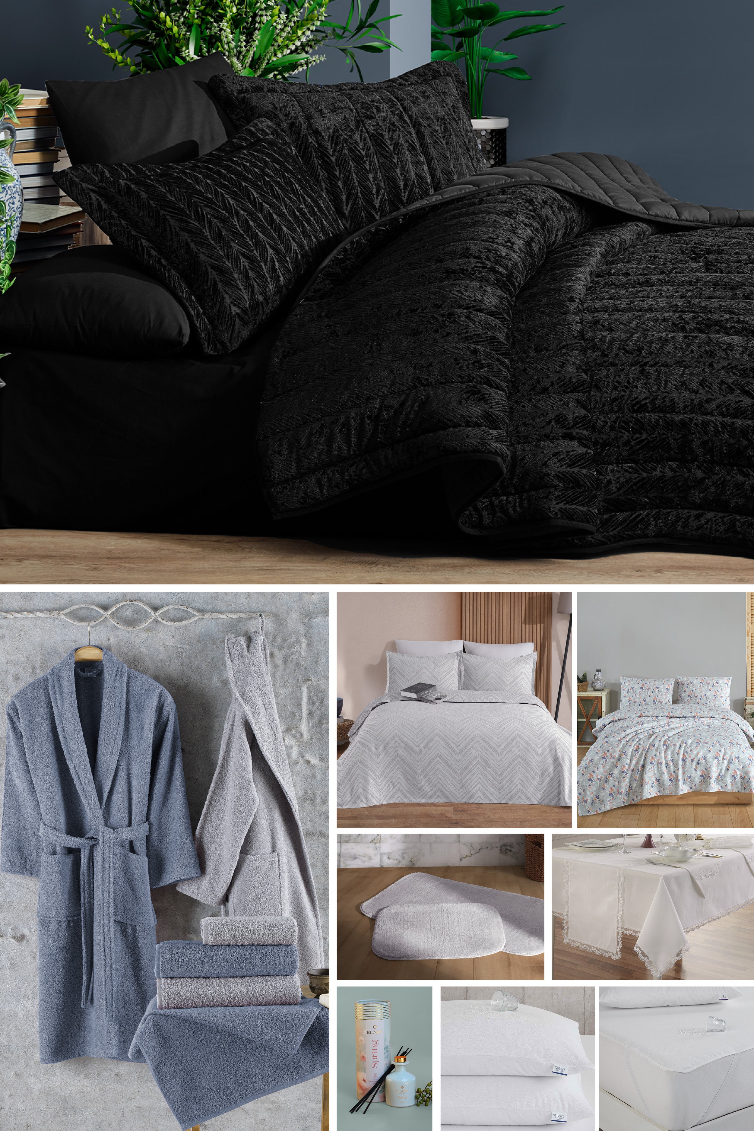 Tüm parçalar ile kapsayıcı ve tüm ev tekstili hazırlayacak dolulukta bir pakettir. Yatak örtüsü Kadife Comfort Set zamansız tasarım ürünüdür. Ürün kendi özel kutusu ve ambalajı ile gönderilir. Yatak örtüsünde ipeksi dokunuş hissi veren yumuşak kumaş kullanılmıştır. Paketin tüm parçaları evinizin günlük kullanıma uygun şekilde şık parçalardan oluşur. Günlük pamuk kumaştan oluşan tamamında %100 organik pamuk kullanılmıştır.