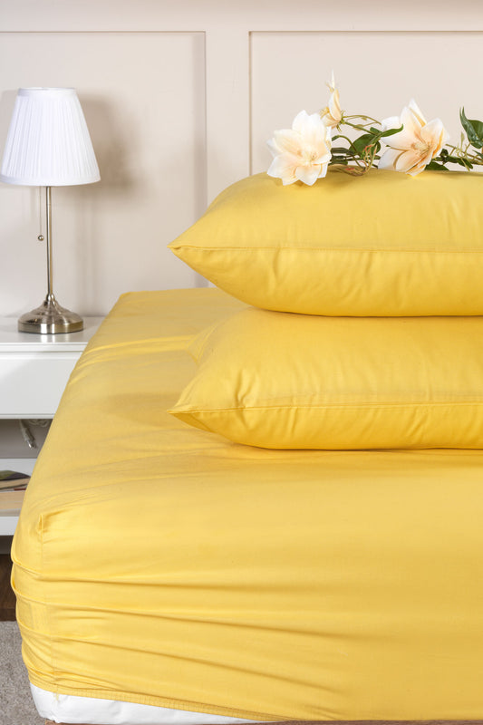ELART Lastikli Çarşaf Seti Çift Kişilik %100 Pamuk Ranforce (160x200 cm) Sarı