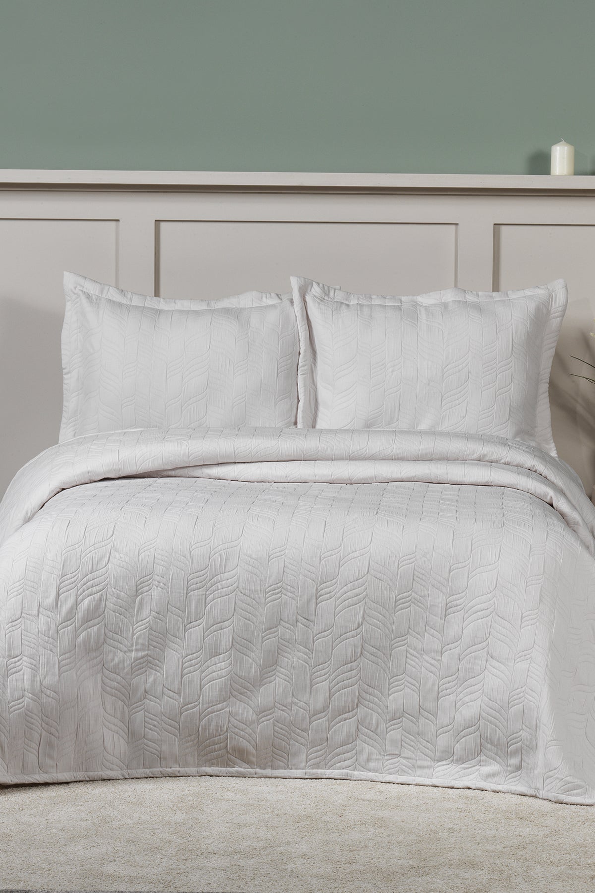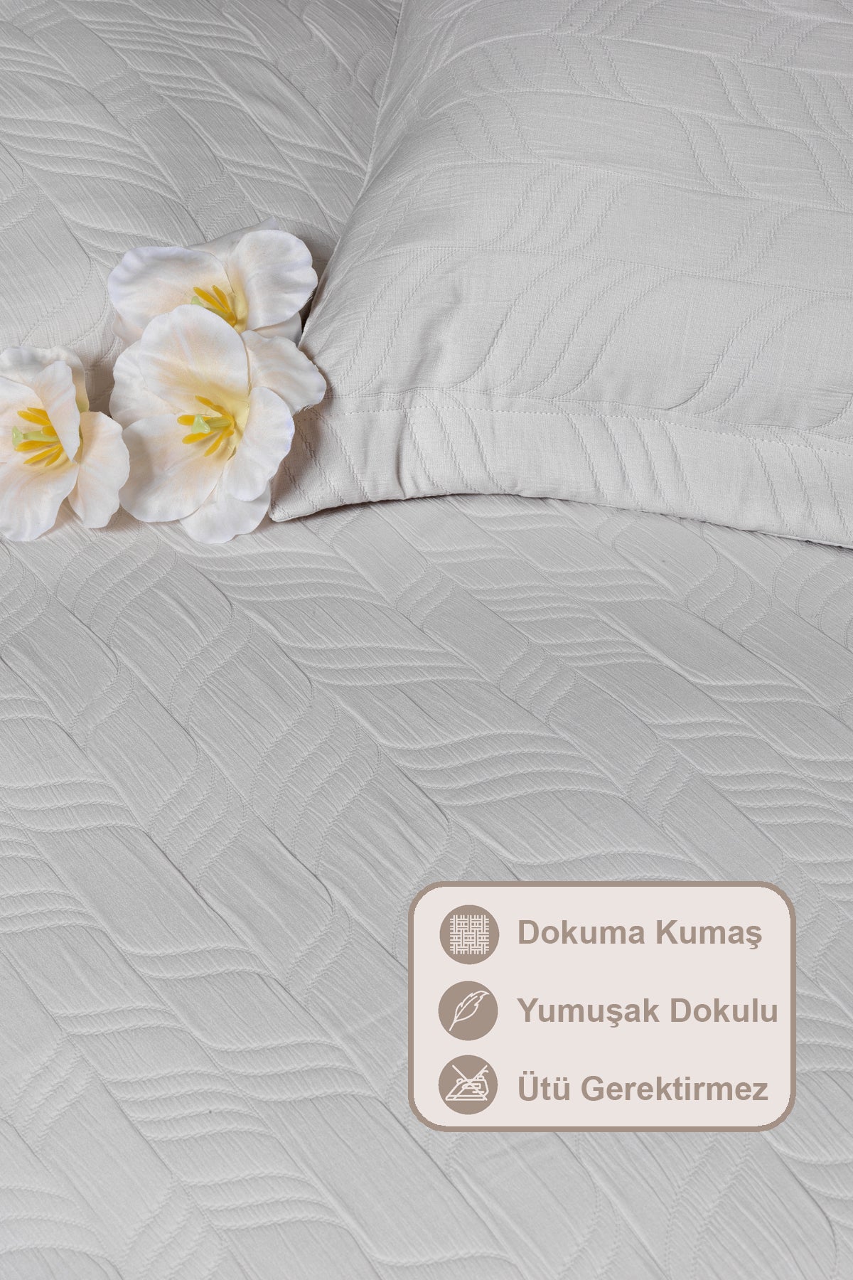 3 parçadan oluşmaktadır. Soğuk havalarda yatak örtüsü olarak, sıcak havalarda ise şık bir pike olarak kullanabilirsiniz. Yumuşacık yapısıyla konforu, modern renkleriyle estetiği bir arada bulacaksınız. 240x250 cm ölçüsündeki yatak örtüsü, geniş yapısıyla çift kişilik yataklara mükemmel uyum sağlar. Dayanıklı ve kolay temizlenen yapısıyla ürünümüzü 30 derecede makinede yıkayarak günlük kullanımınızda konforu ve rahatlığı bulacaksınız. Kuru temizlemeye uygundur.