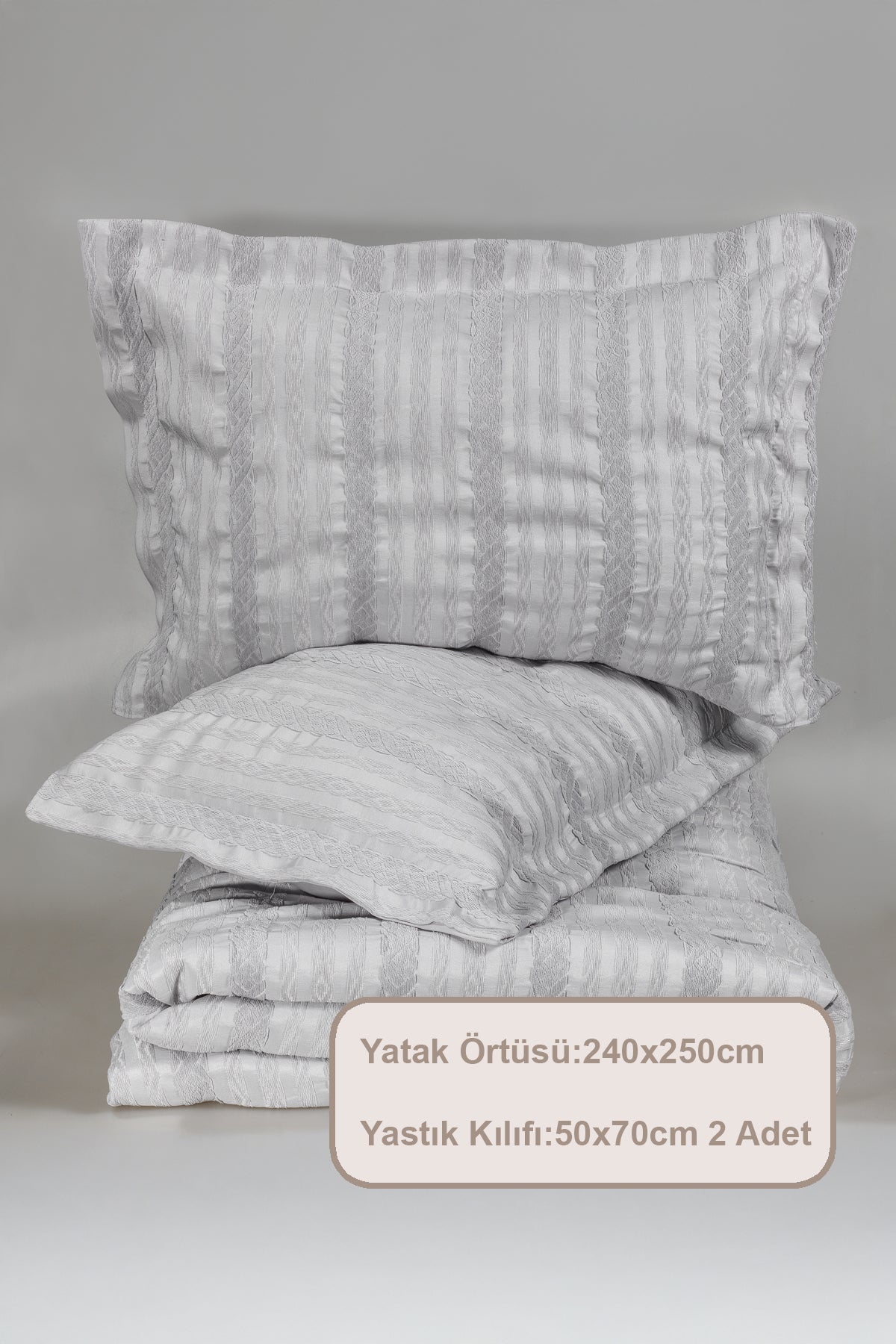 ELART Pera Yatak Örtüsü Seti Çift Kişilik (240x250 cm) Gri