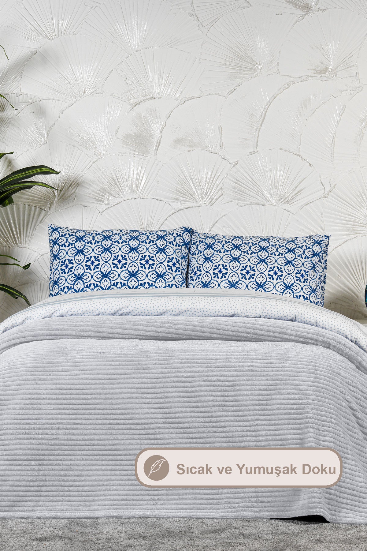 1 Adet Kadife Yatak Örtüsü (240x260 cm),