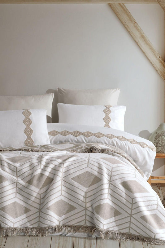 ELART Romantic Nevresim Takımı Çift Kişilik Lastikli Çarşaf (200x220 cm) Bej