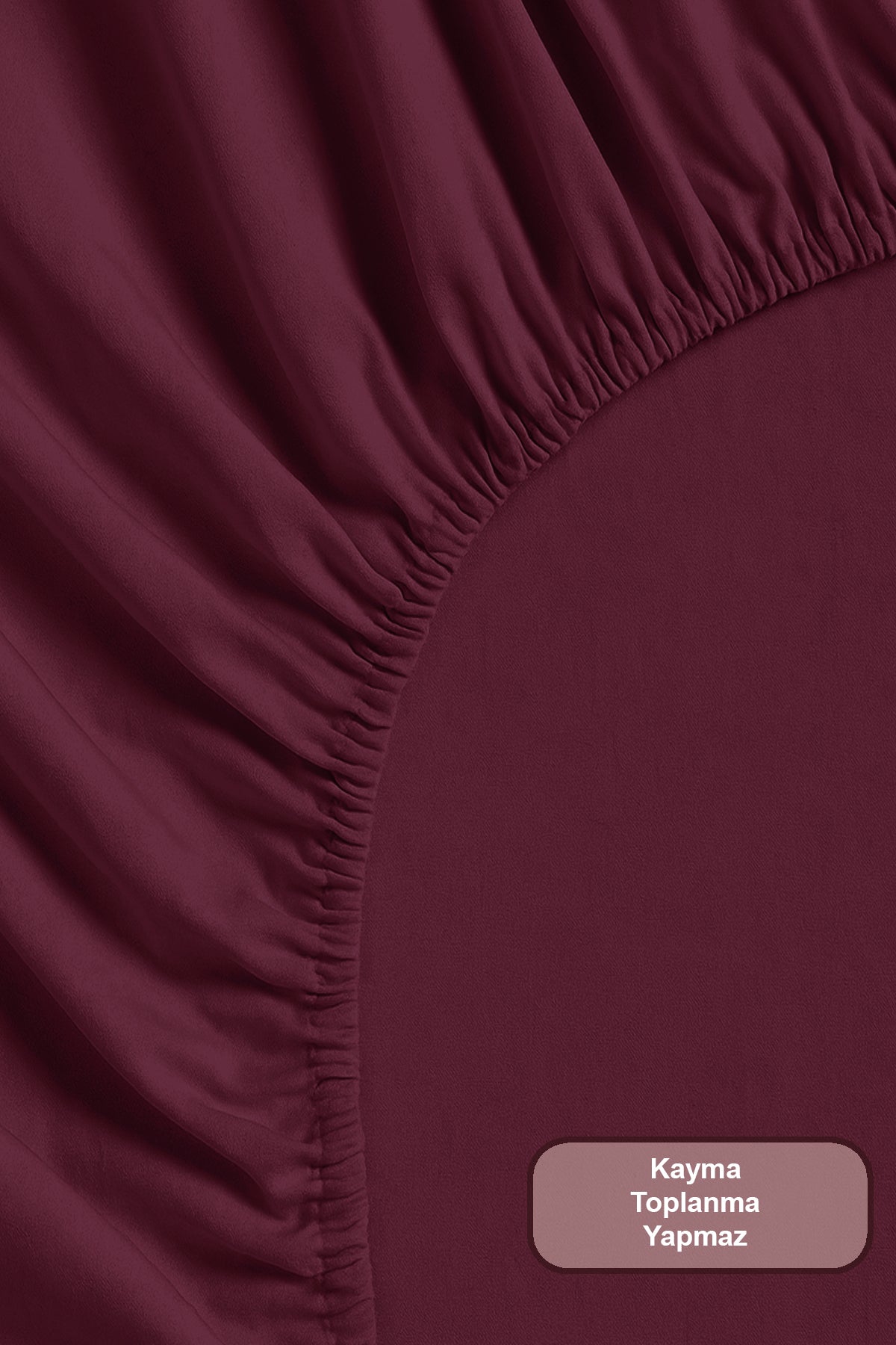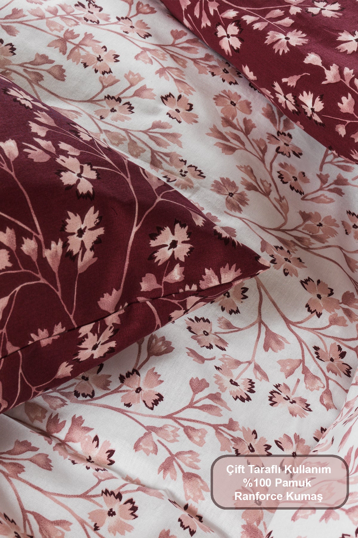 ELART Jasmin Nevresim Takımı Çift Kişilik %100 Pamuk Ranforce Lastikli Çarşaf (200x220 cm) Bordo