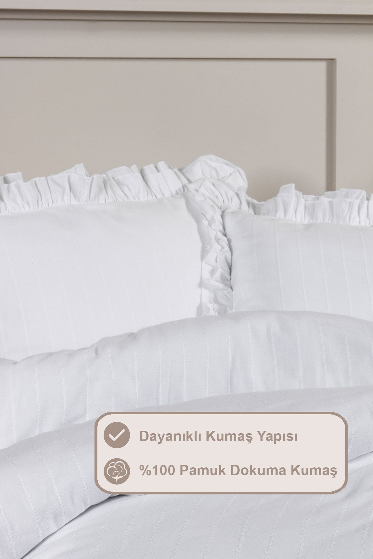 ELART Lotus Nevresim Takımı Tek Kişilik %100 Pamuk Ranforce Fırfırlı Lastikli Çarşaf (160xx220 cm) Beyaz