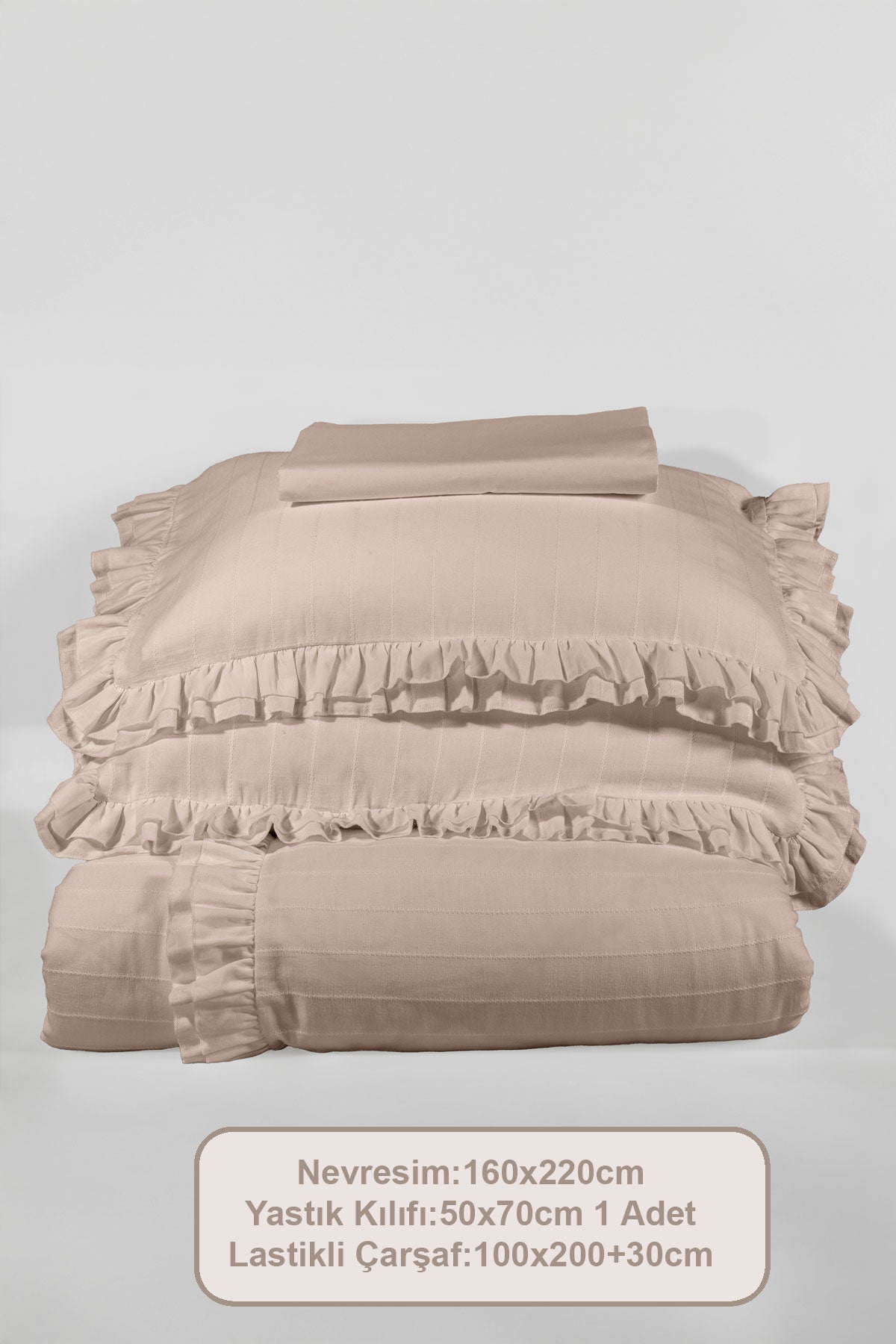 ELART Lotus Nevresim Takımı Tek Kişilik %100 Pamuk Ranforce Fırfırlı Lastikli Çarşaf (160xx220 cm) Taş rengi