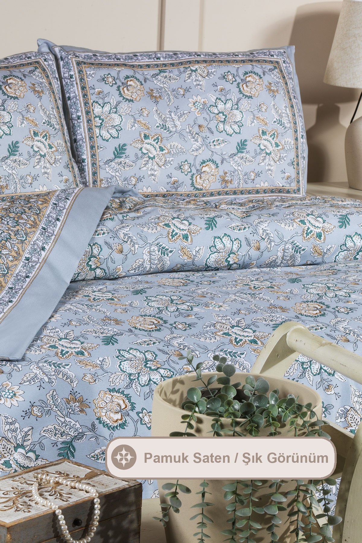4 parçadan oluşmaktadır. Parlak satenin zarif dokusu, dijital baskının canlı ve net renkleriyle buluşuyor. Modern teknolojiyle üretilen özel baskılar, her detayda renklerin ışıltısını korurken, %100 pamuk saten dokusu cildinize yumuşak bir temas sunar. Doğal hava geçirgen yapısı ve yüksek nem emici özelliği sayesinde terletmez. Rahat ve konforlu bir uyku deneyimi sunar. Cildi tahriş etmez ve insan sağlığına zarar vermez. Göz alıcı tasarımıyla yatak odanıza estetik bir hava katarak konforlu uykunun keyfini yaşatır. 82 tel dokuma sıklığı ile bu takım uzun ömürlü ve dayanıklıdır. Ürünümüzü 30 derecede makinede yıkayarak günlük kullanımınızda konforu ve rahatlığı bulacaksınız. Kurutma makinesi ve kuru temizleme önerilmez.