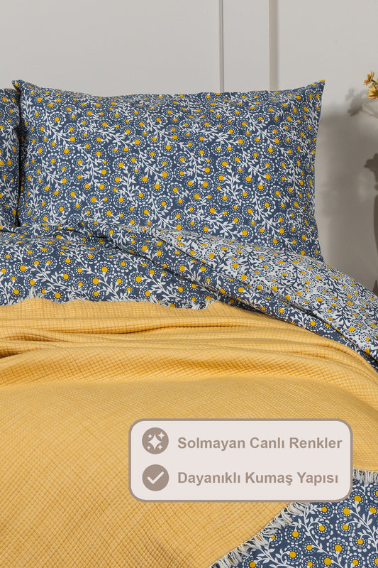 ELART Amanda Nevresim Takımı Tek Kişilik %100 Pamuk Ranforce Lastikli Çarşaf (160x220 cm) Sarı