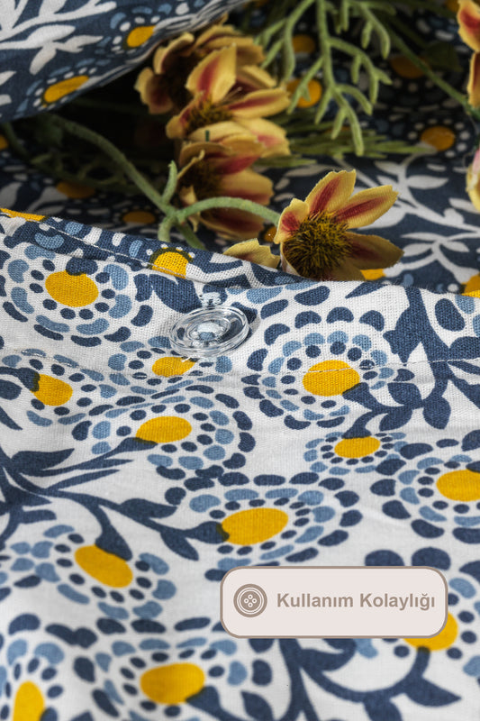 ELART Talia Nevresim Takımı Çift Kişilik %100 Pamuk Ranforce Lastikli Çarşaf (200x220 cm) Lacivert