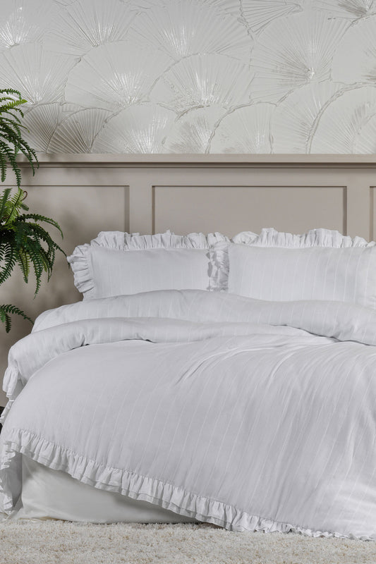 ELART Lotus Nevresim Takımı King Size %100 Pamuk Ranforce Fırfırlı Lastikli Çarşaf (240x220 cm) Beyaz