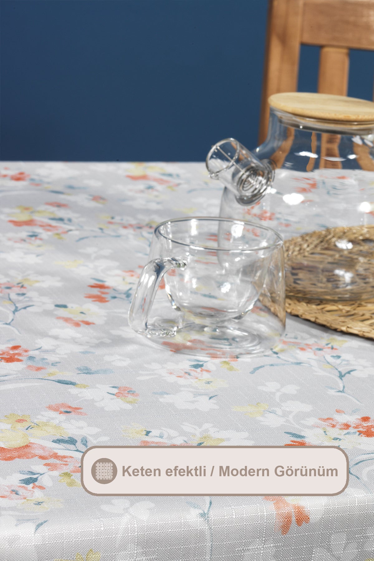 ELART Floret Masa Örtüsü Digital Baskılı (160x220 cm) Ekru