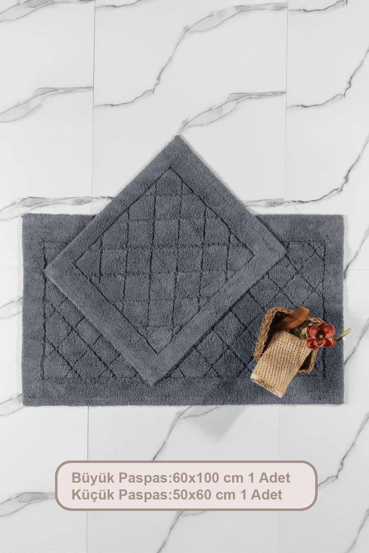 ELART Frio Banyo Halısı Paspas Takımı Pamuklu 2 Adet (60x100 cm) Antrasit