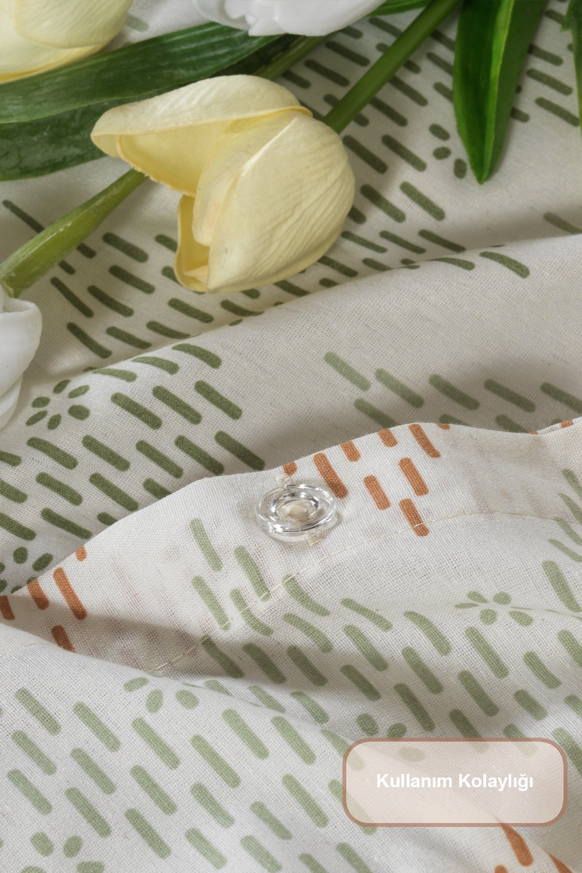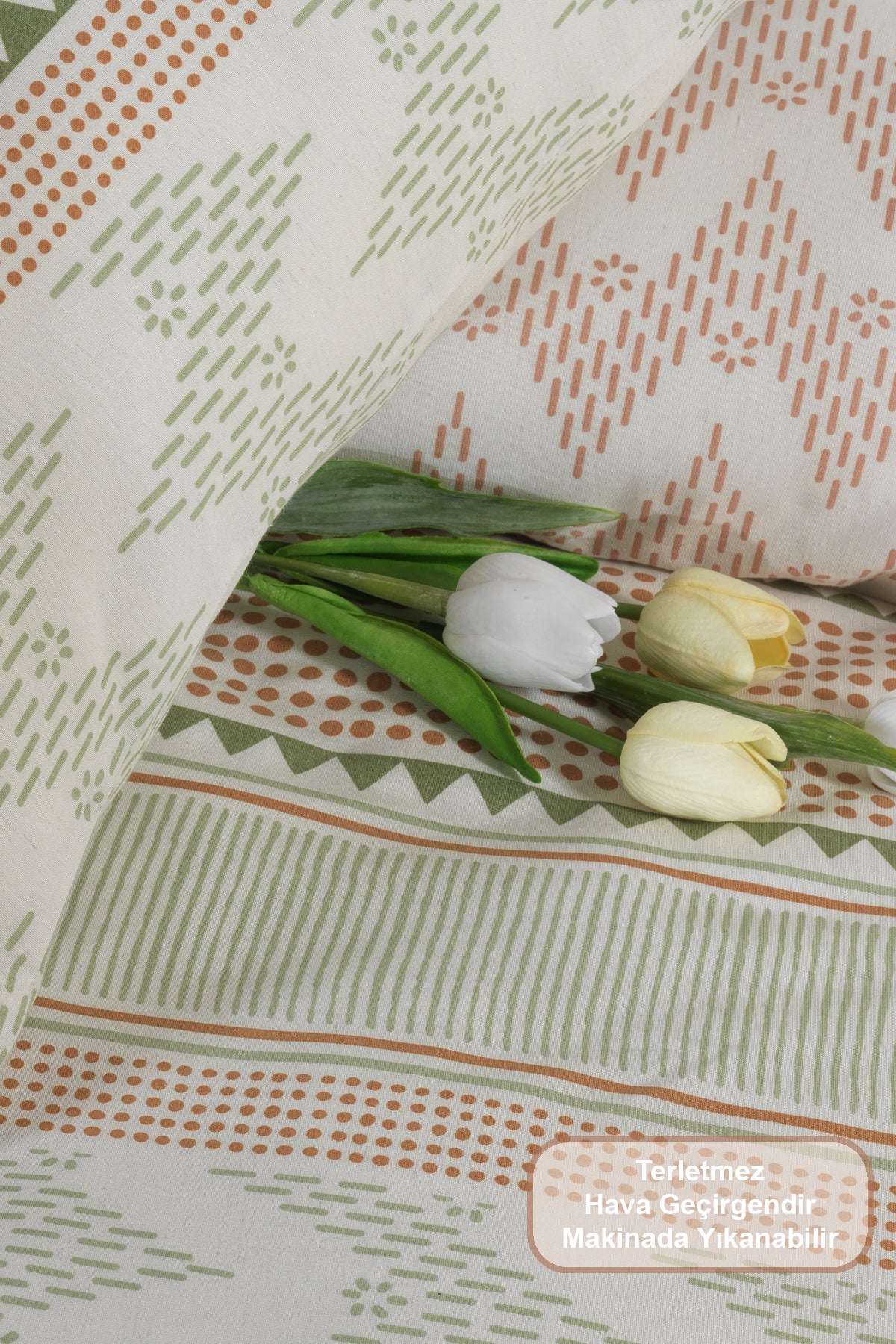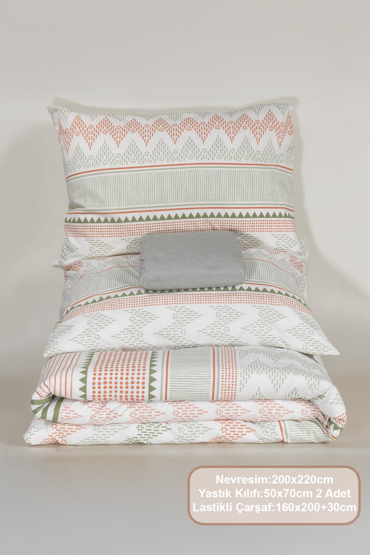 Paket içeriği 4 parçadan oluşmaktadır. Pamuklu kumaş; doğal hava geçirgen yapısıyla rahat ve konforlu bir uyku deneyimi sunar. Soft renkleri ve zarif deseni ile yatak odalarınıza ferah ve şık bir görünüm sağlar. Ürünümüzü 30 derecede makinede yıkayarak ilk günkü parlaklığını kaybetmeden kullanabilirsiniz. Kurutma makinasında düşük ısıda kurutma yapılabilir.