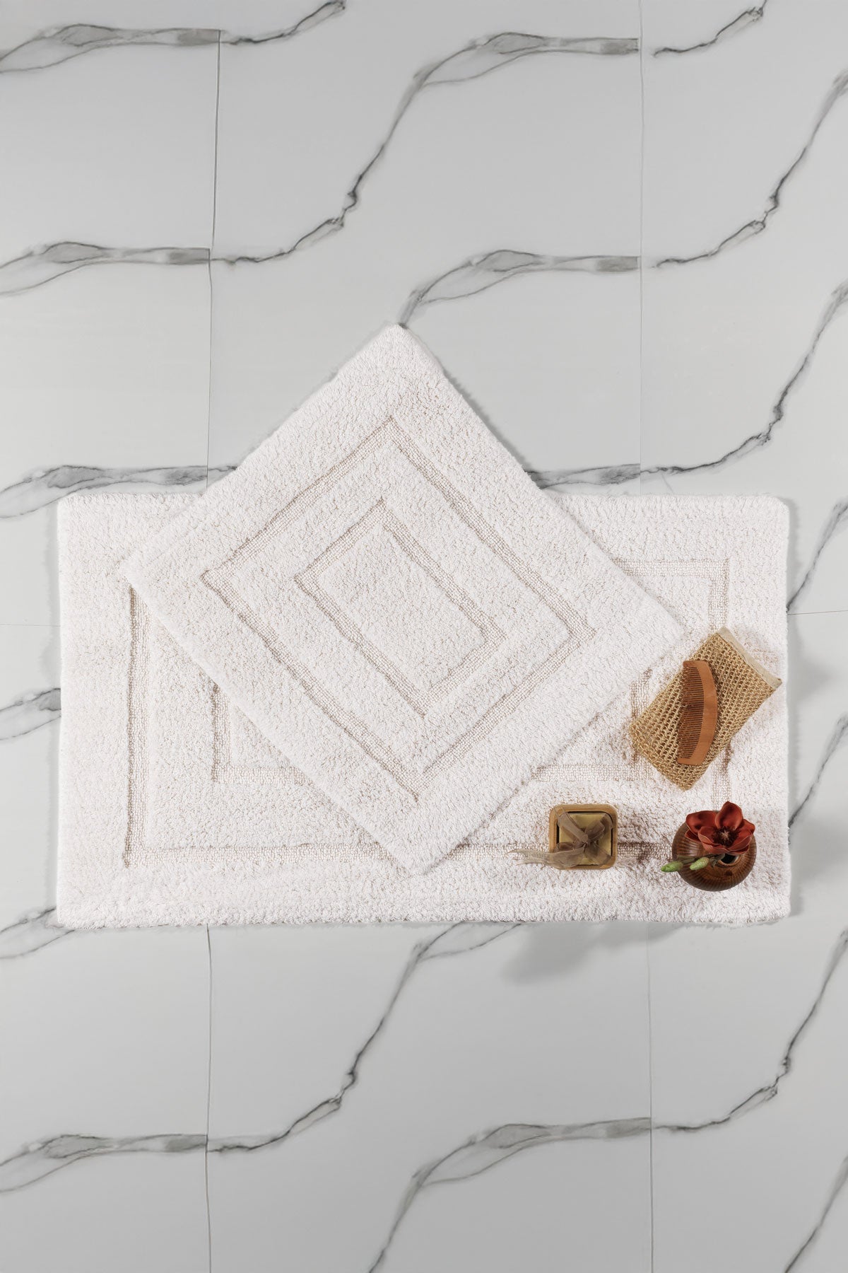 ELART Solid Banyo Halısı Paspas Takımı Pamuklu 2 Adet (60x100 cm) Krem
