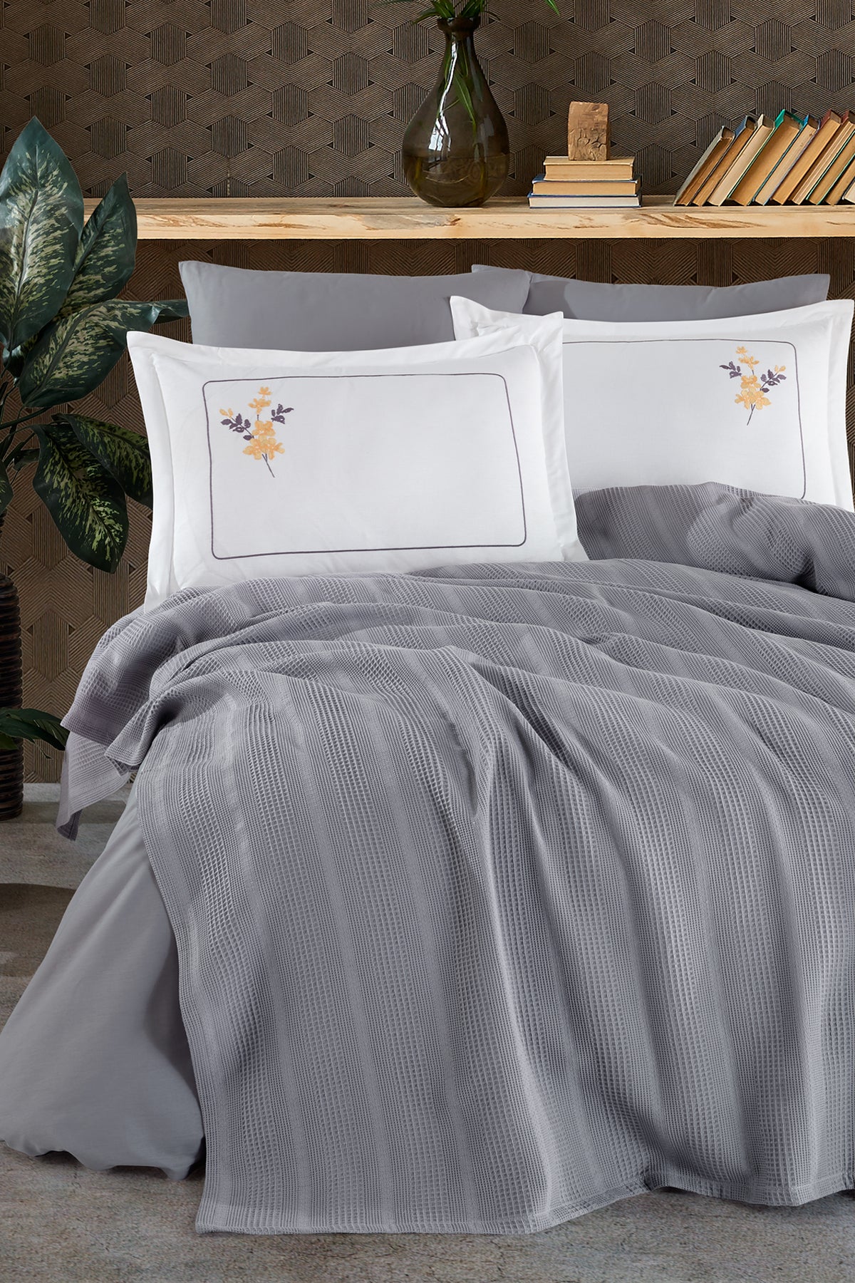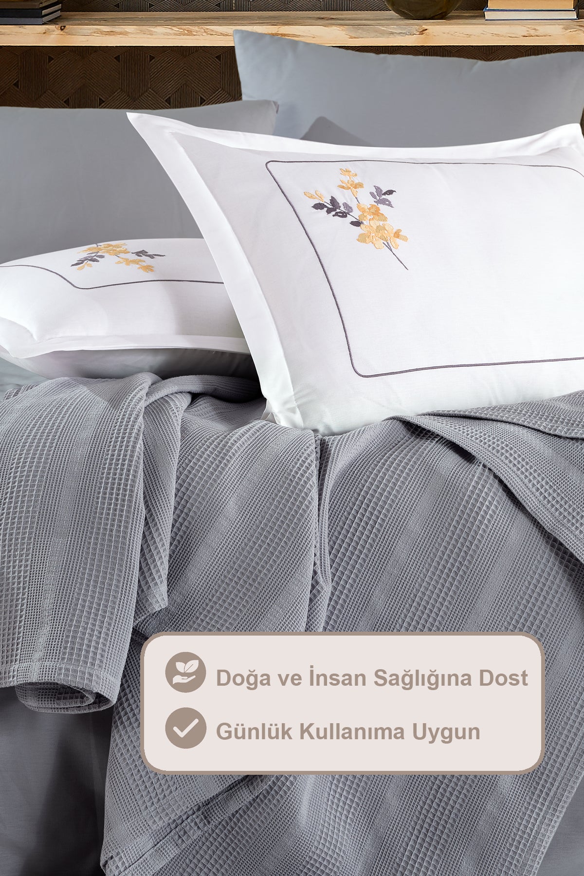 ELART Melany Pike Çift Kişilik %100 Pamuk (200x220 cm) Gri