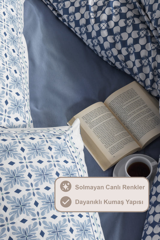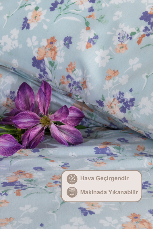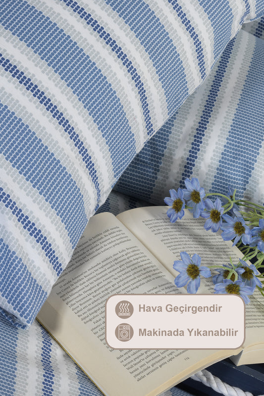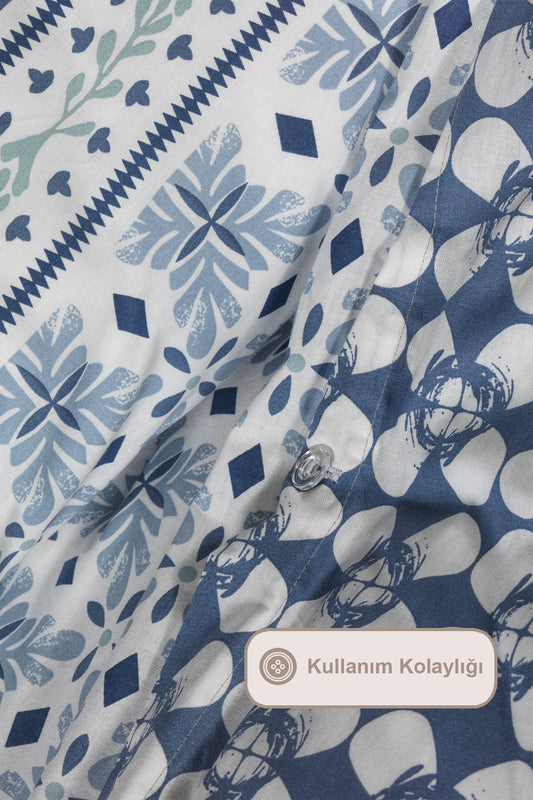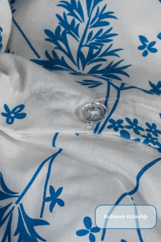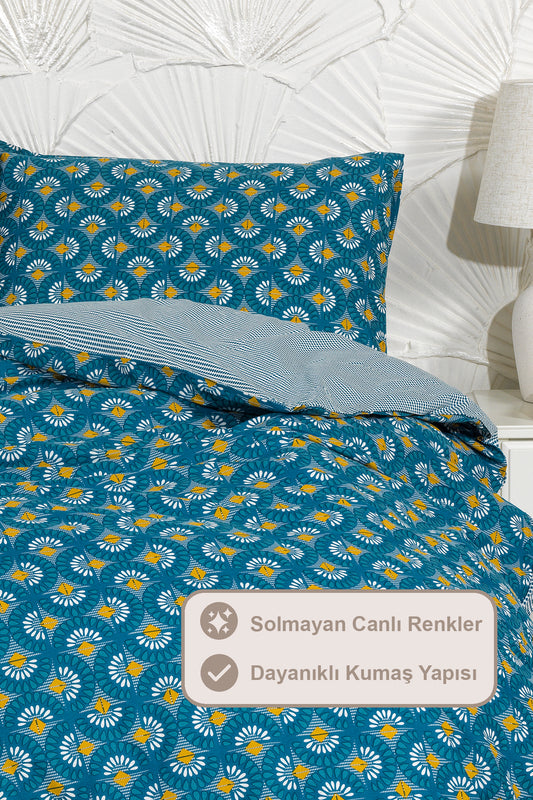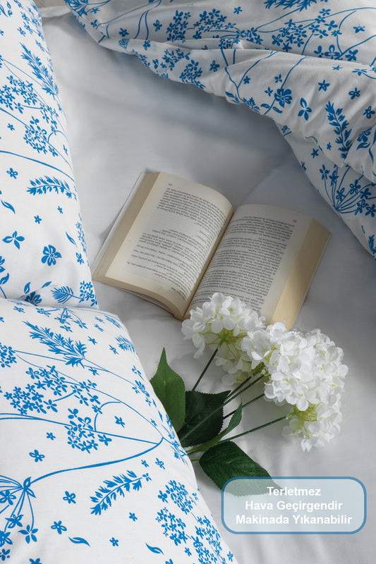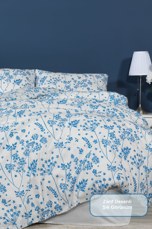 ELART Amanda Nevresim Takımı Tek Kişilik %100 Pamuk Ranforce Lastikli Çarşaf (160x220 cm) Mavi