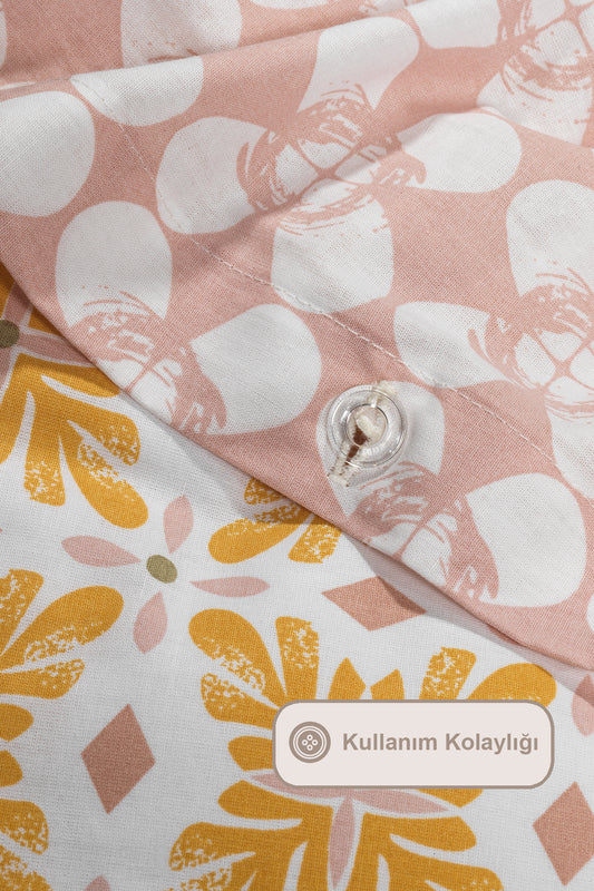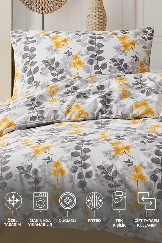 ELART Flores Nevresim Takımı Tek Kişilik Ranforce 3 Parça Sarı