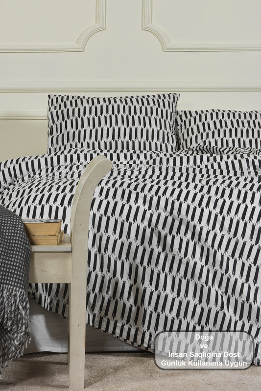 ELART Carlos Nevresim Takımı Tek Kişilik %100 Pamuk Ranforce Lastikli Çarşaf (160x220 cm) Siyah