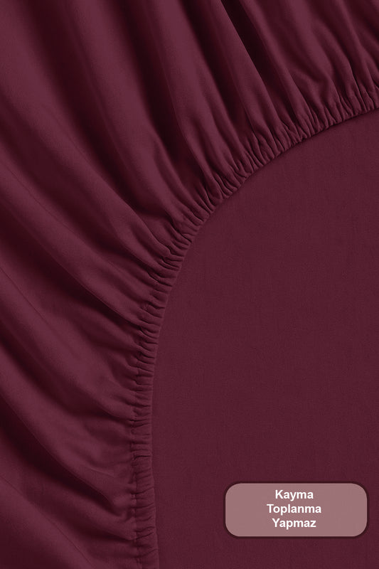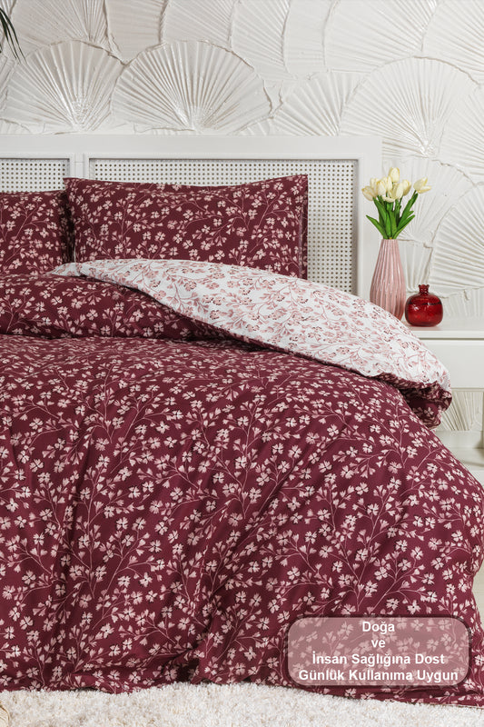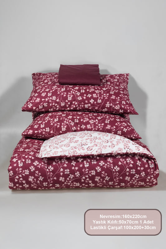 ELART Jasmin Nevresim Takımı Tek Kişilik %100 Pamuk Ranforce Lastikli Çarşaf (160x220 cm) Bordo