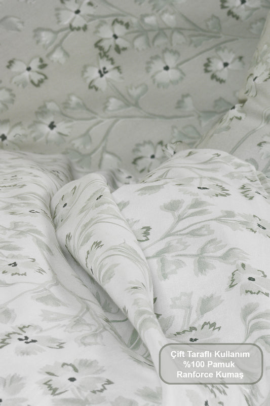 ELART Jasmin Nevresim Takımı Tek Kişilik %100 Pamuk Ranforce Lastikli Çarşaf (160x220 cm) Yeşil