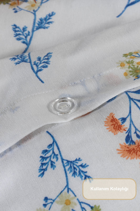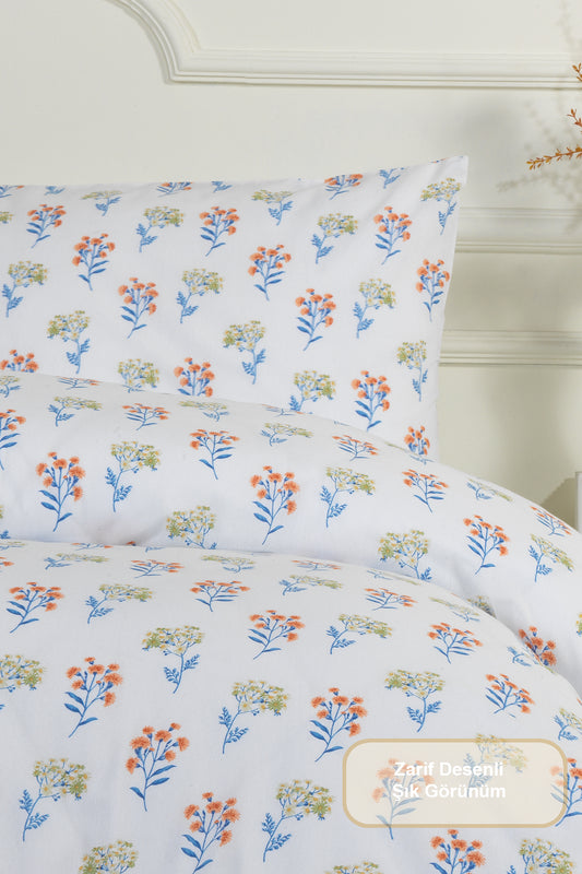ELART Floret Nevresim Takımı Tek Kişilik Pamuklu Lastikli Çarşaf (160x200 cm) Ekru