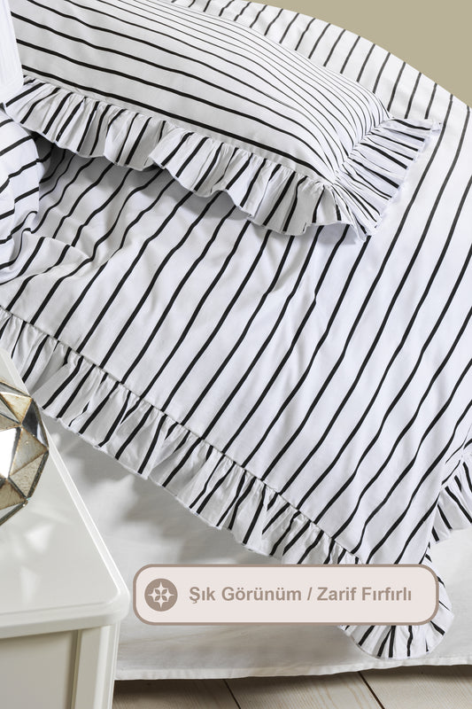 ELART Lara Nevresim Takımı Tek Kişilik Lastikli Çarşaf %100 Pamuk Ranforce Fırfırlı (160x220 cm) Siyah