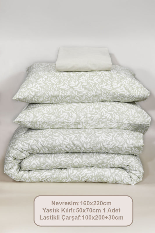 ELART Siena Nevresim Takımı Tek Kişilik %100 Pamuk Ranforce Lastikli Çarşaf (160x220 cm) Yeşil