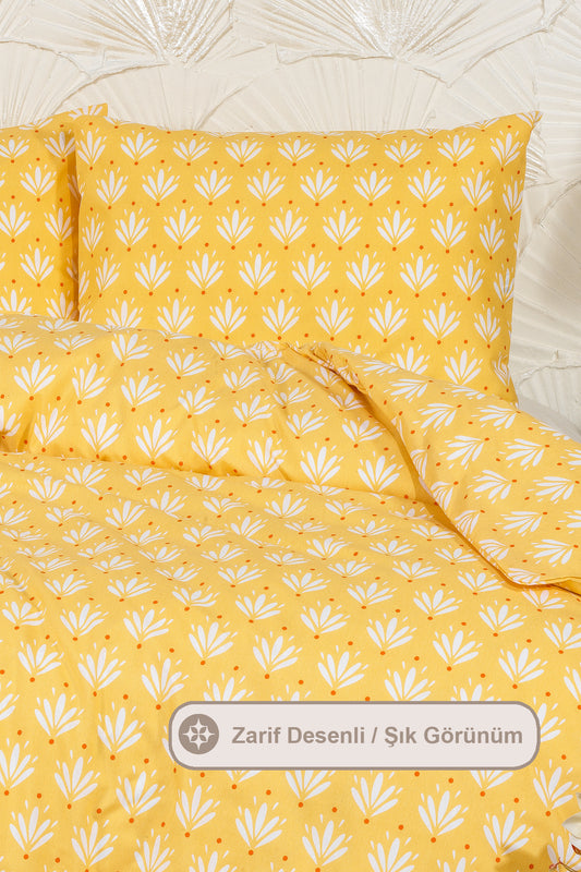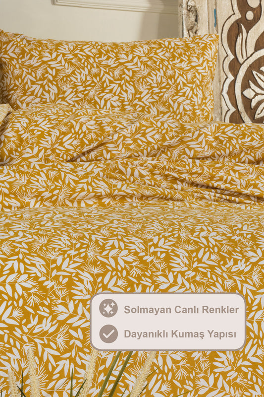 ELART Siena Nevresim Takımı Tek Kişilik %100 Pamuk Ranforce Lastikli Çarşaf (160x220 cm) Sarı