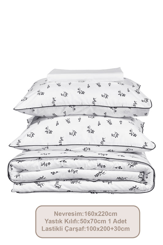 ELART Floret Nevresim Takımı Tek Kişilik Pamuklu Lastikli Çarşaf (160x200 cm) Ekru