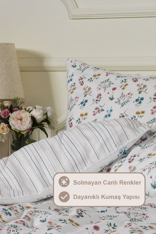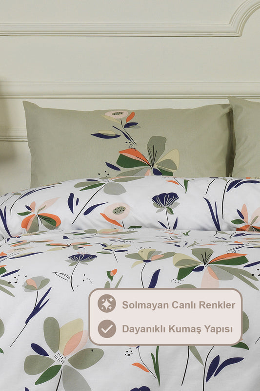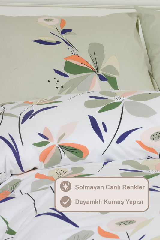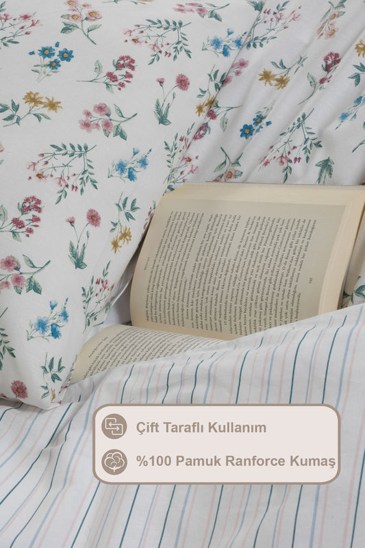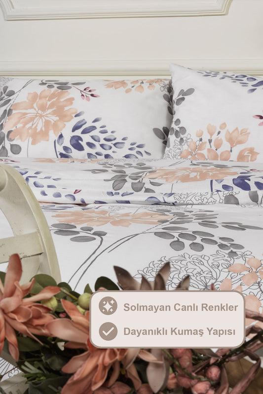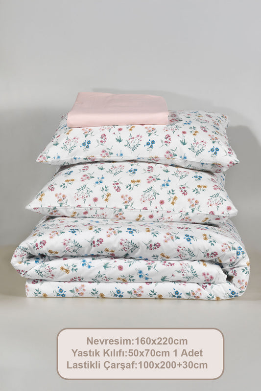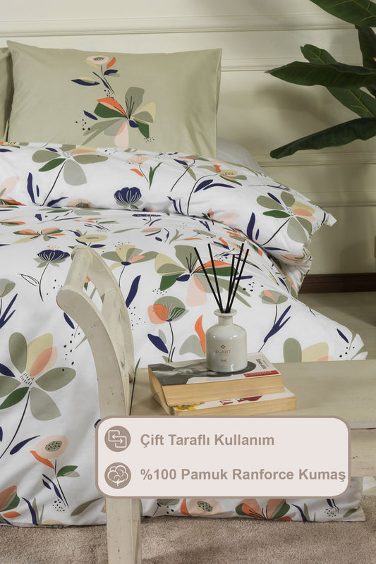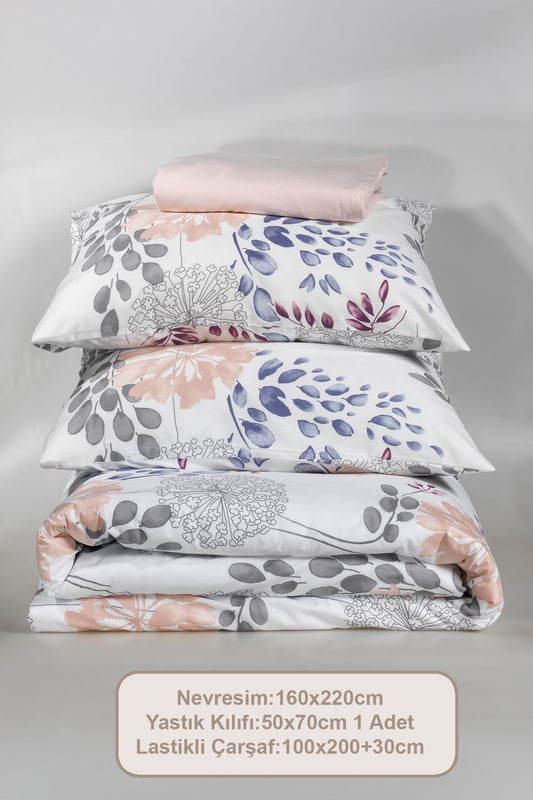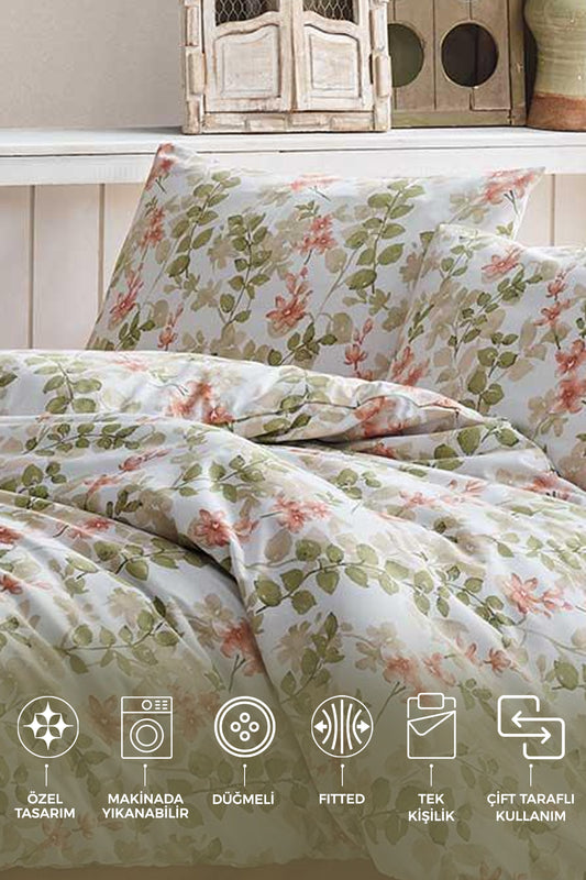 ELART Bloom Fitted Nevresim Takımı Tek Kişilik %100 Doğal Pamuk Ranforce 3 Parça (160x220 cm)