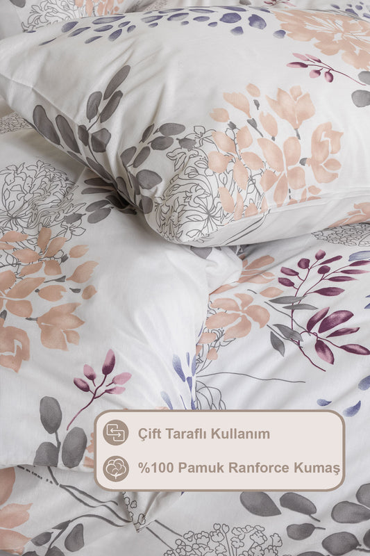 ELART Flores Nevresim Takımı Tek Kişilik Ranforce 3 Parça Pudra