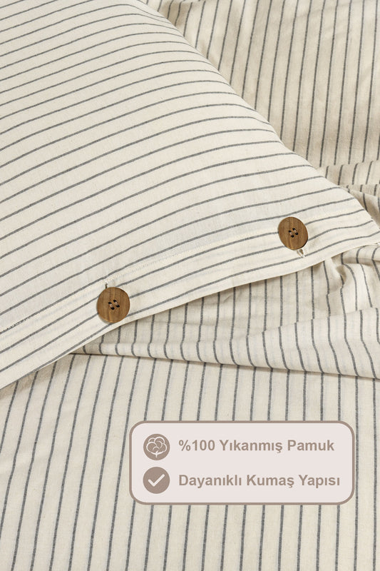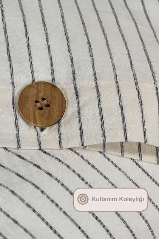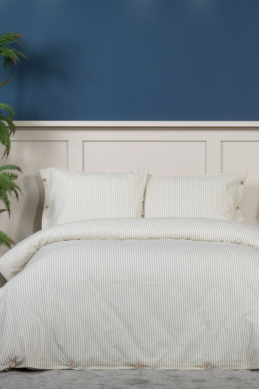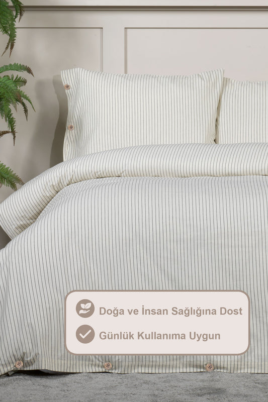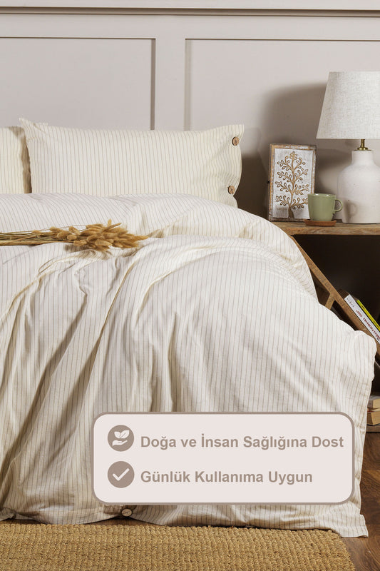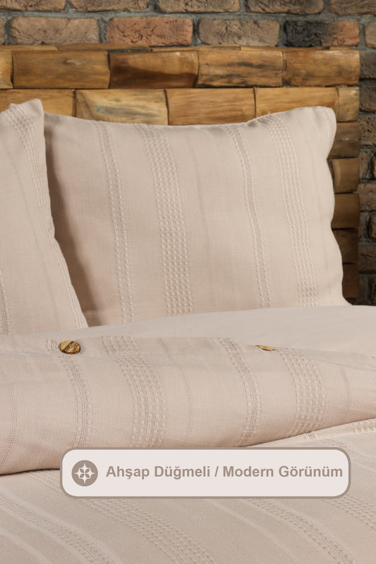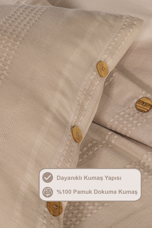 ELART Tiara Nevresim Takımı Tek Kişilik Lastikli Çarşaf %100 Pamuk Ranforce Ahşap Düğmeli (160x220 cm) Bej