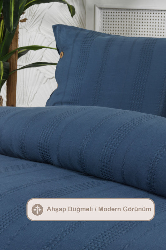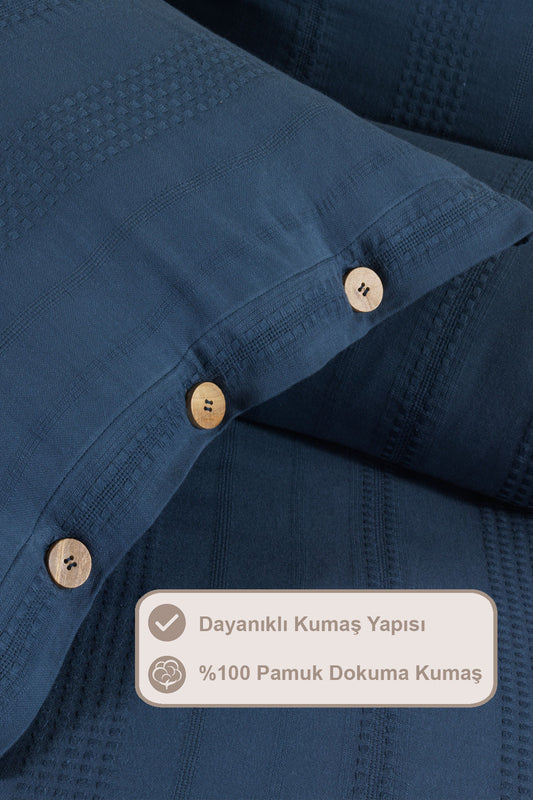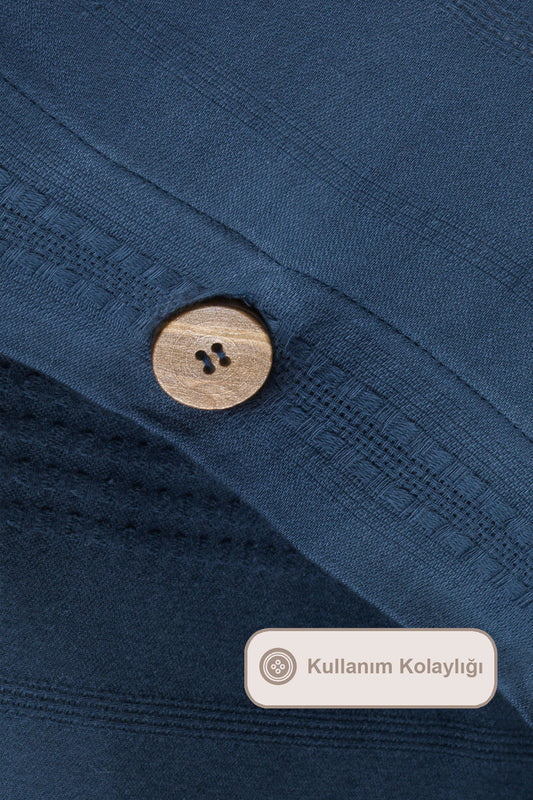 ELART Tiara Nevresim Takımı Tek Kişilik Lastikli Çarşaf %100 Pamuk Ranforce Ahşap Düğmeli (160x220 cm) Mavi