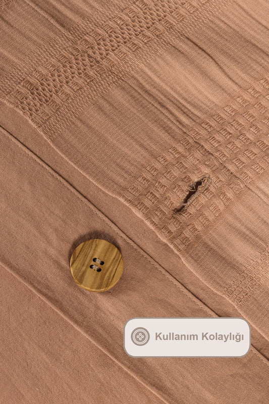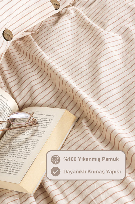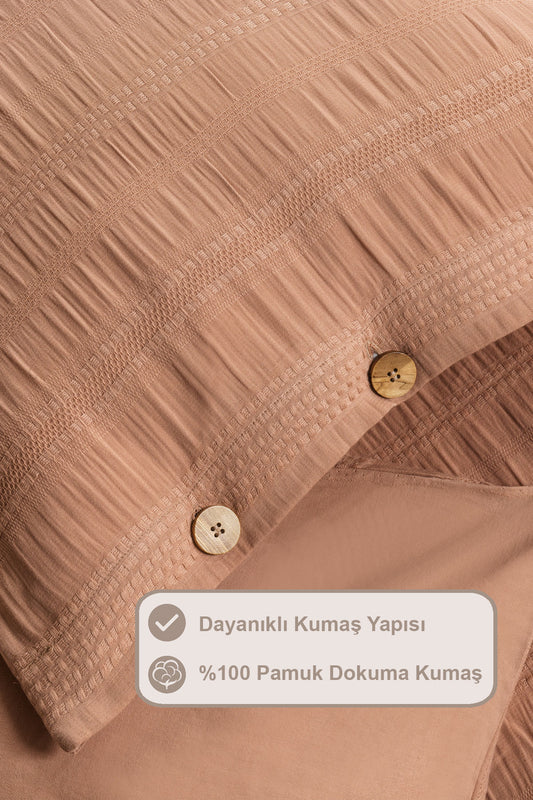 ELART Tiara Nevresim Takımı Tek Kişilik Lastikli Çarşaf %100 Pamuk Ranforce Ahşap Düğmeli (160x220 cm) Tarçın