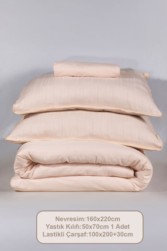 ELART Helen Nevresim Takımı Tek Kişilik Ranforce 3 Parça Pudra