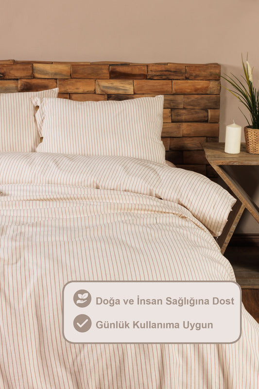 ELART Impero Nevresim Takımı Tek Kişilik Lastikli Çarşaf %100 Pamuk (160x220 cm) Tarçın