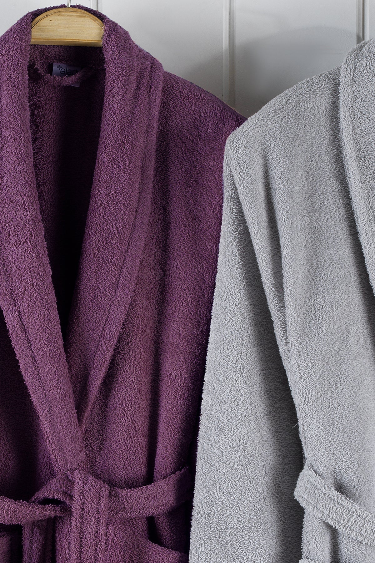 ELART Naturel Bornoz Aile Seti %100 Pamuk 4 Parça Mürdüm