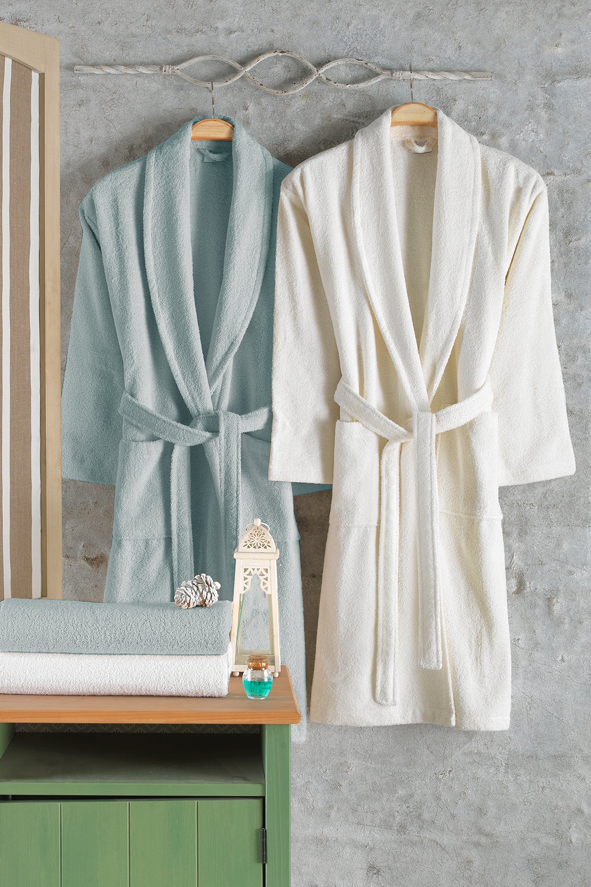 ELART Naturel Bornoz Aile Seti %100 Pamuk 4 Parça Yeşil