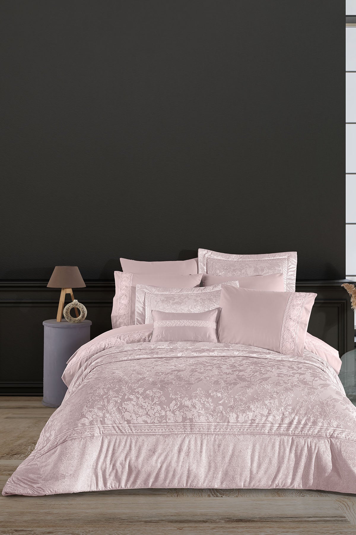 Toplam 10 parça içeriğiyle hem estetik hem de işlevsellik sunan bu set, çeyizlik olarak değerlendirilebileceği gibi, yatak odasına zarif bir güncelleme yapmak isteyenler için de ideal bir seçimdir.