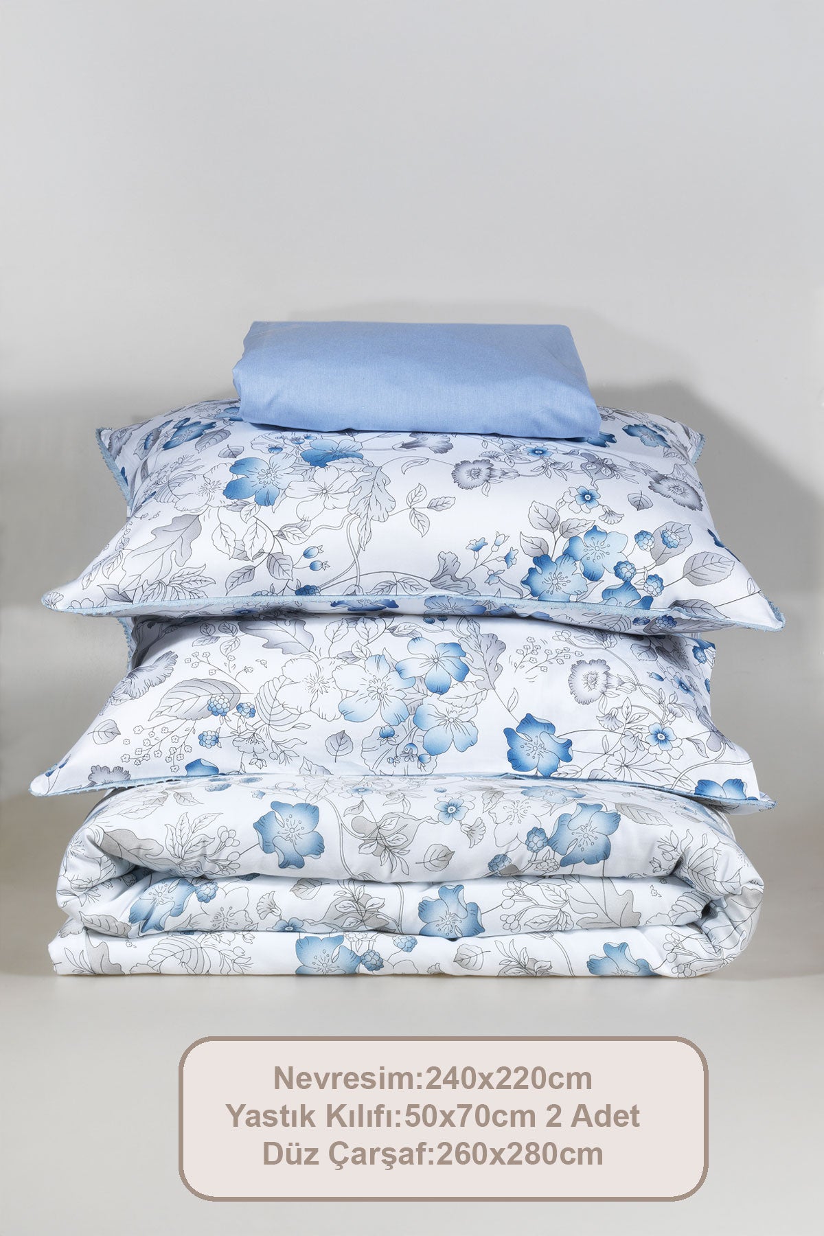 ELART Rose Nevresim Takımı King Size Battal Boy Digital Baskılı %100 Pamuk Saten Dantelli (240x220 cm) Mavi