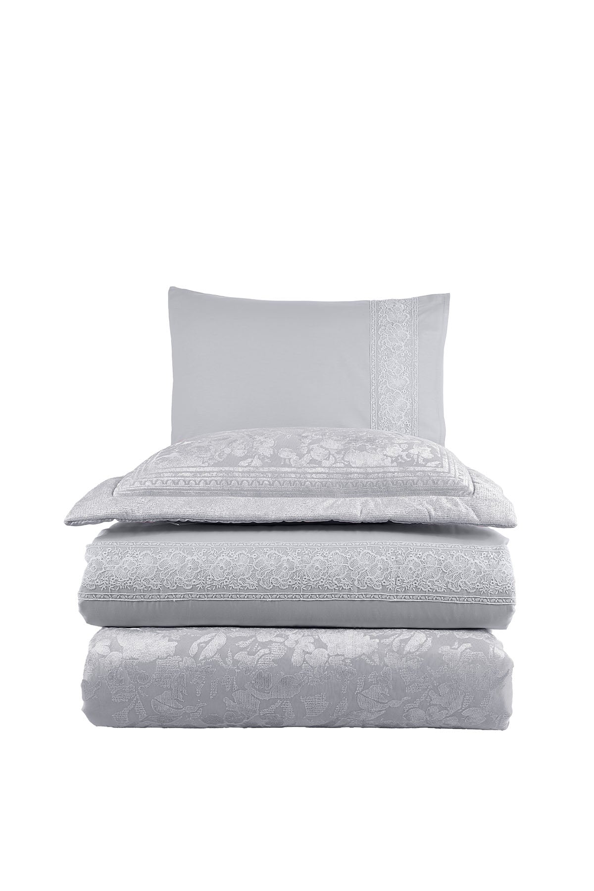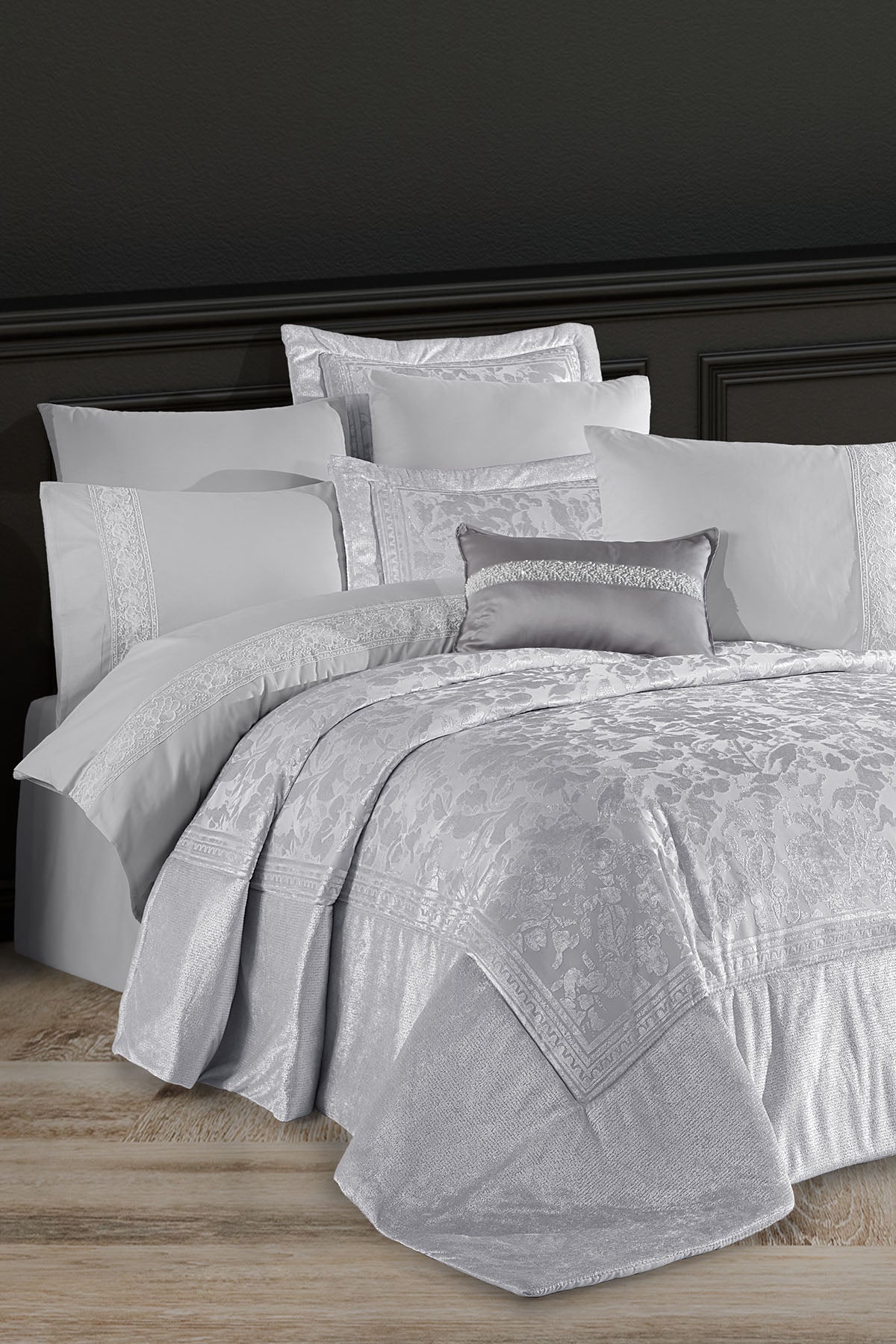 Toplam 10 parça içeriğiyle hem estetik hem de işlevsellik sunan bu set, çeyizlik olarak değerlendirilebileceği gibi, yatak odasına zarif bir güncelleme yapmak isteyenler için de ideal bir seçimdir.
