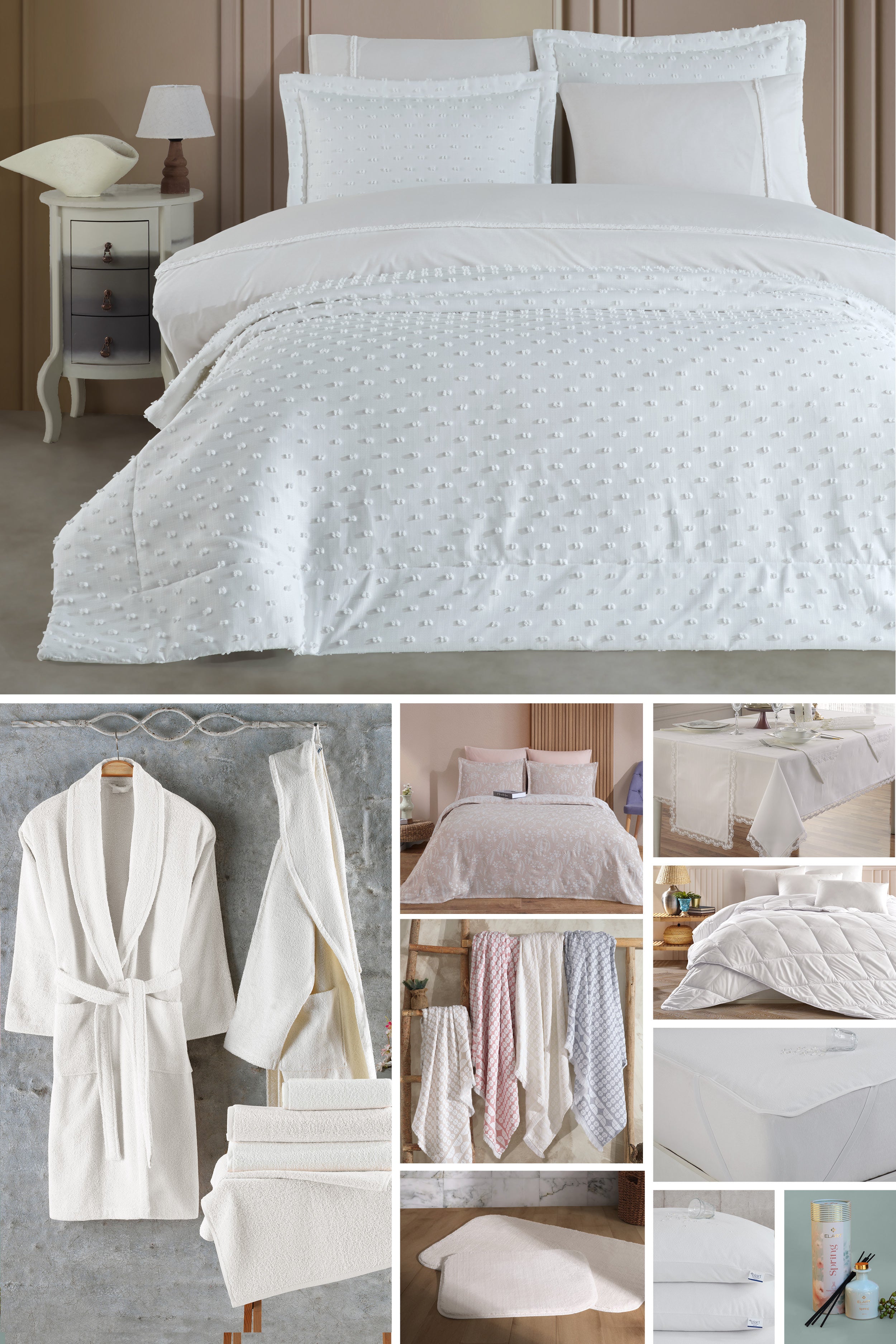 Nora Çeyiz Paketi, modern ve şık tasarımıyla yatak odanıza zarafet katmak için özenle hazırlanmıştır ;