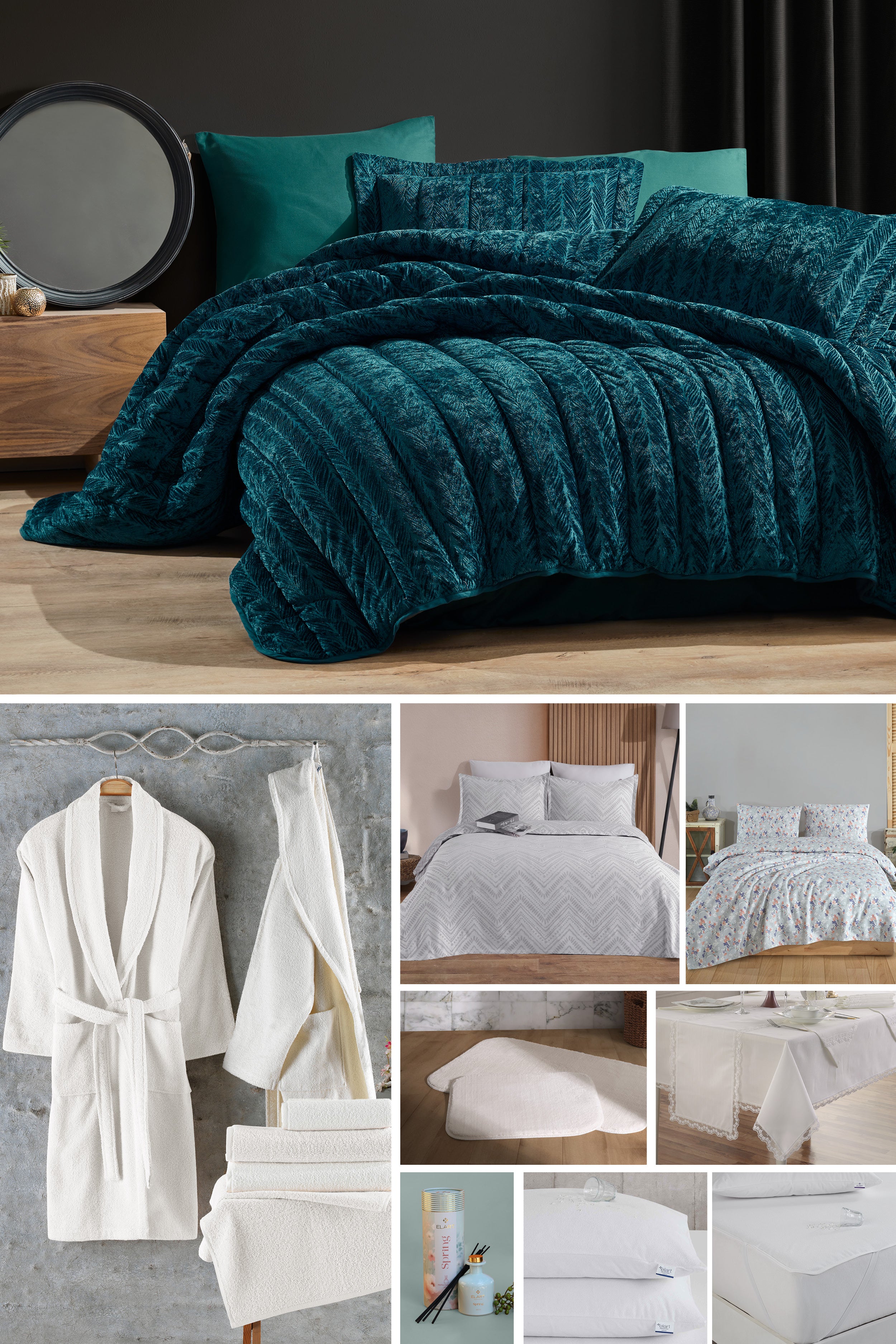 Tüm parçalar ile kapsayıcı ve tüm ev tekstili hazırlayacak dolulukta bir pakettir. Yatak örtüsü Kadife Comfort Set zamansız tasarım ürünüdür. Ürün kendi özel kutusu ve ambalajı ile gönderilir. Yatak örtüsünde ipeksi dokunuş hissi veren yumuşak kumaş kullanılmıştır. Paketin tüm parçaları evinizin günlük kullanıma uygun şekilde şık parçalardan oluşur. Günlük pamuk kumaştan oluşan tamamında %100 organik pamuk kullanılmıştır.